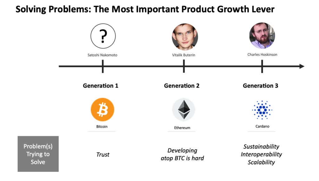 The first takeaway from our history and analysis of Cardano is that solving problems is the core. The three products we reviewed today grew themselves. The problems they solved were just that important: