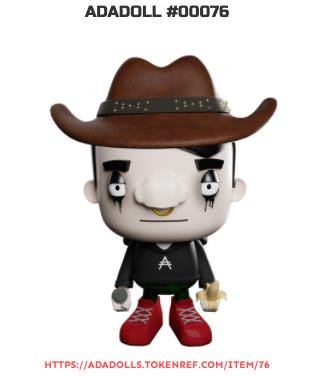 There are loads of projects in this space to explore. New ones arrive daily. I generally use two sites to find them. Wen CNFT is the first. TokenRef is the second. I used TokenRef to see this ada doll which was purchased for 550 Ada on September 12th: