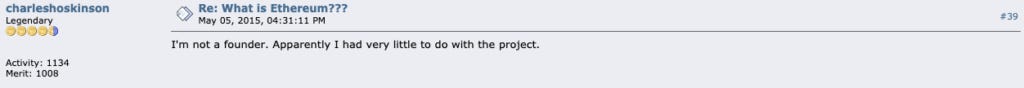 As far as this author knows, it is a case of collective delusion. All we truly know is Charles was working on the project. Having carefully read all of Charles’ posts on Bitcoin Forum, he was working on the Bitcoin Education Project and Invictus, at the same time. So, even if he was involved with Ethereum, we do know it was in addition to other things. We also know that in 2015 Charles explicitly says he was not a founder: