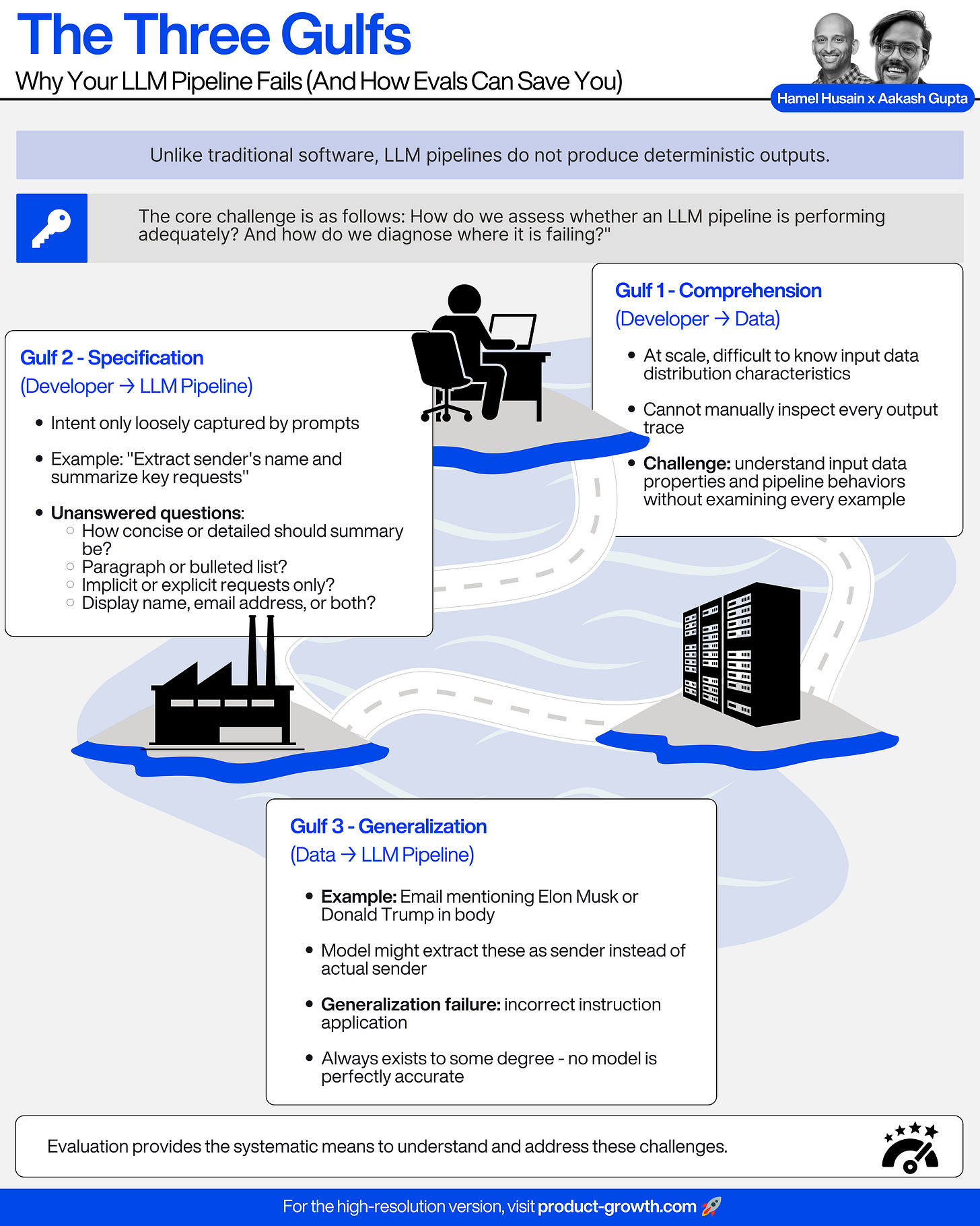 The core challenge is: How do we assess whether an LLM pipeline is performing adequately? And how do we diagnose where it is failing?