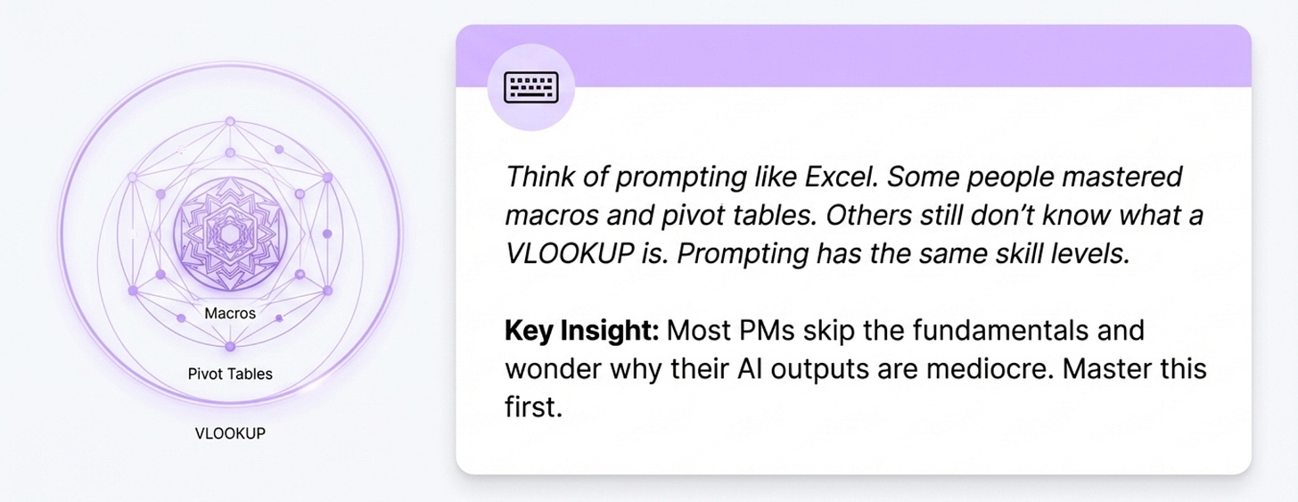 Think of prompting like Excel. Some people learned macros, VBA, 15 connected worksheets with pivot tables. Others still don’t know what a VLOOKUP is.