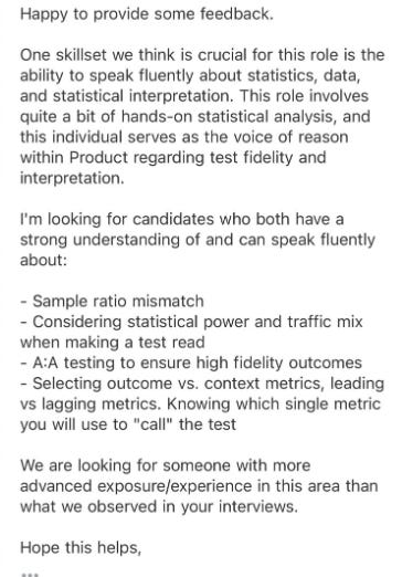 A subscriber in our Slack community shared the following feedback after an interview: