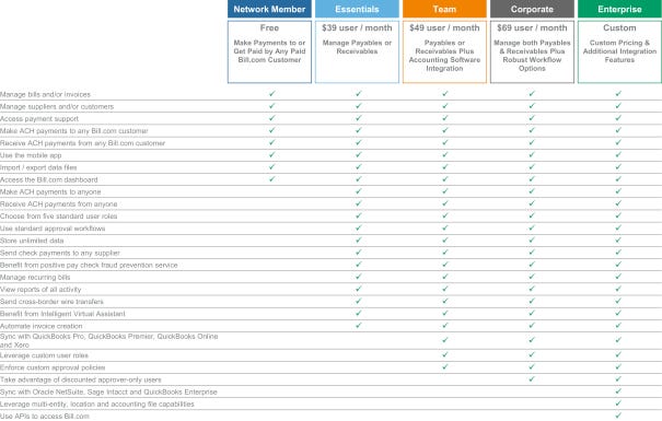 This membership has you create a Bill.com to manage and pay invoices via ACH freely. But importantly, it is also something Bill.com requires you to create to accept payment from others using Bill.com In this way, Bill.com was able to build a growth mechanism from its customers' usage. Customers would pay using Bill.com, and that would fill Bill.com’s top of funnel with prospects to try and convert to its paid products.
