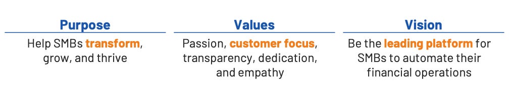 Importantly, they all also ladder up to Bill.com’s larger purpose, product vision, and product values:
