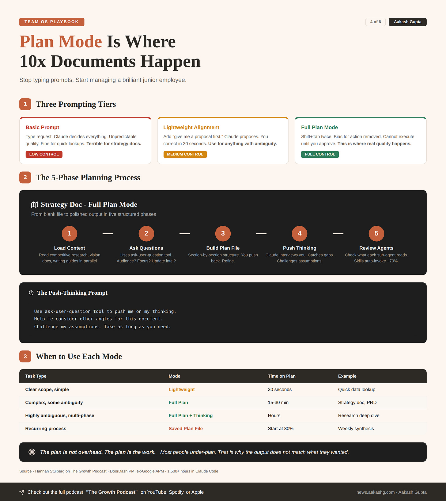 Here is the thing. Most people rush in. Let it write a bad first draft. Then yell at it for getting things wrong. The fix is not better prompting after the fact. It is better planning before you start.
