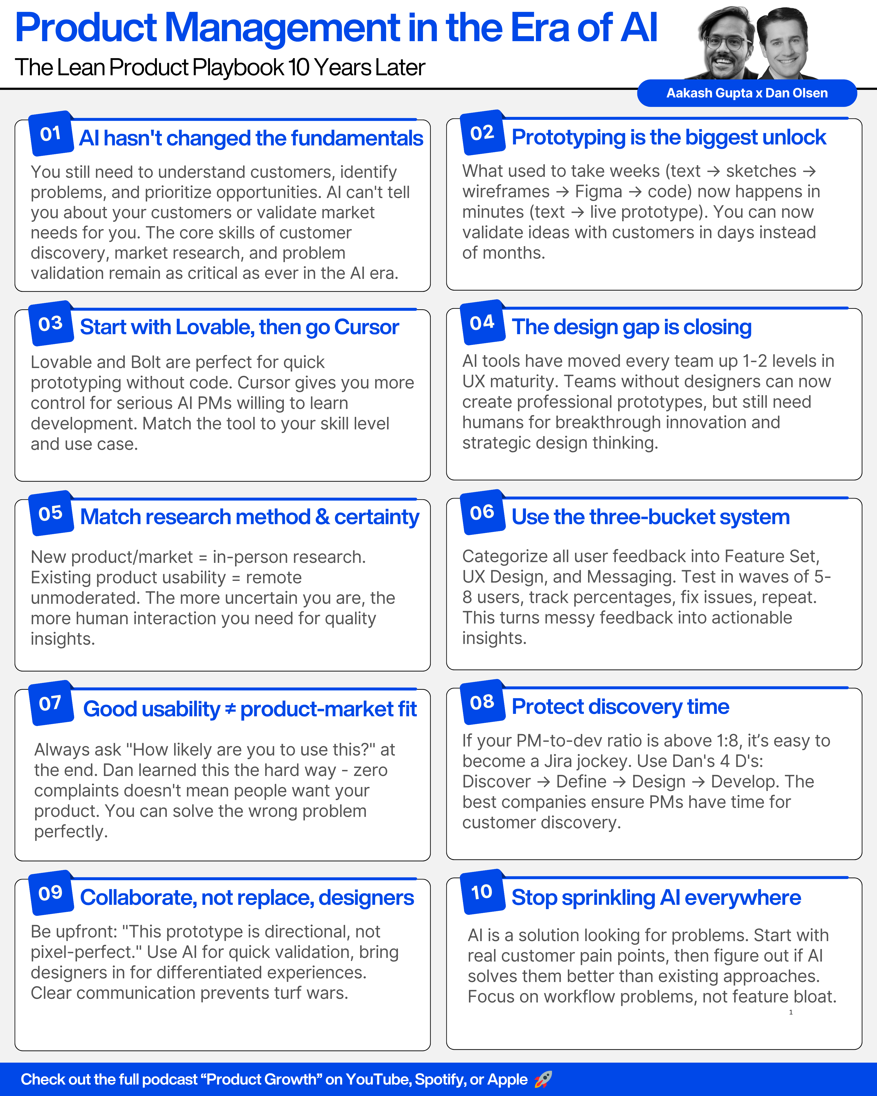 Legendary author of "The Lean Product Playbook" Dan Olsen joins the podcast with a tactical masterclass on product discovery with modern AI tools.