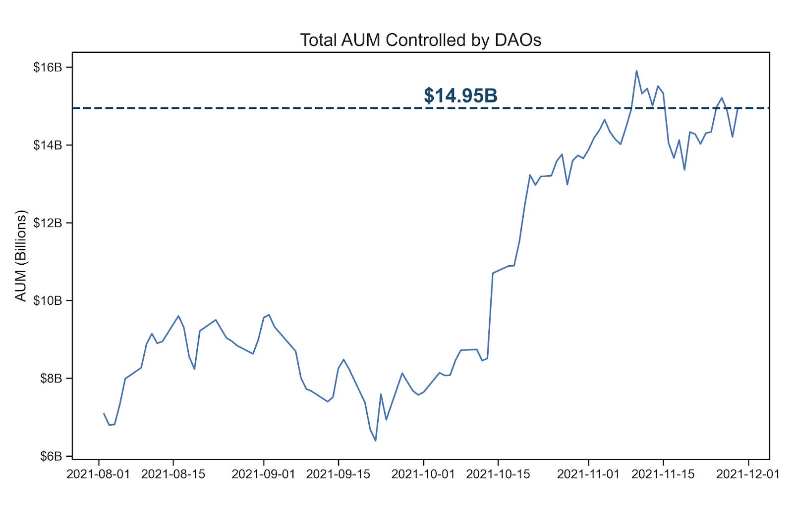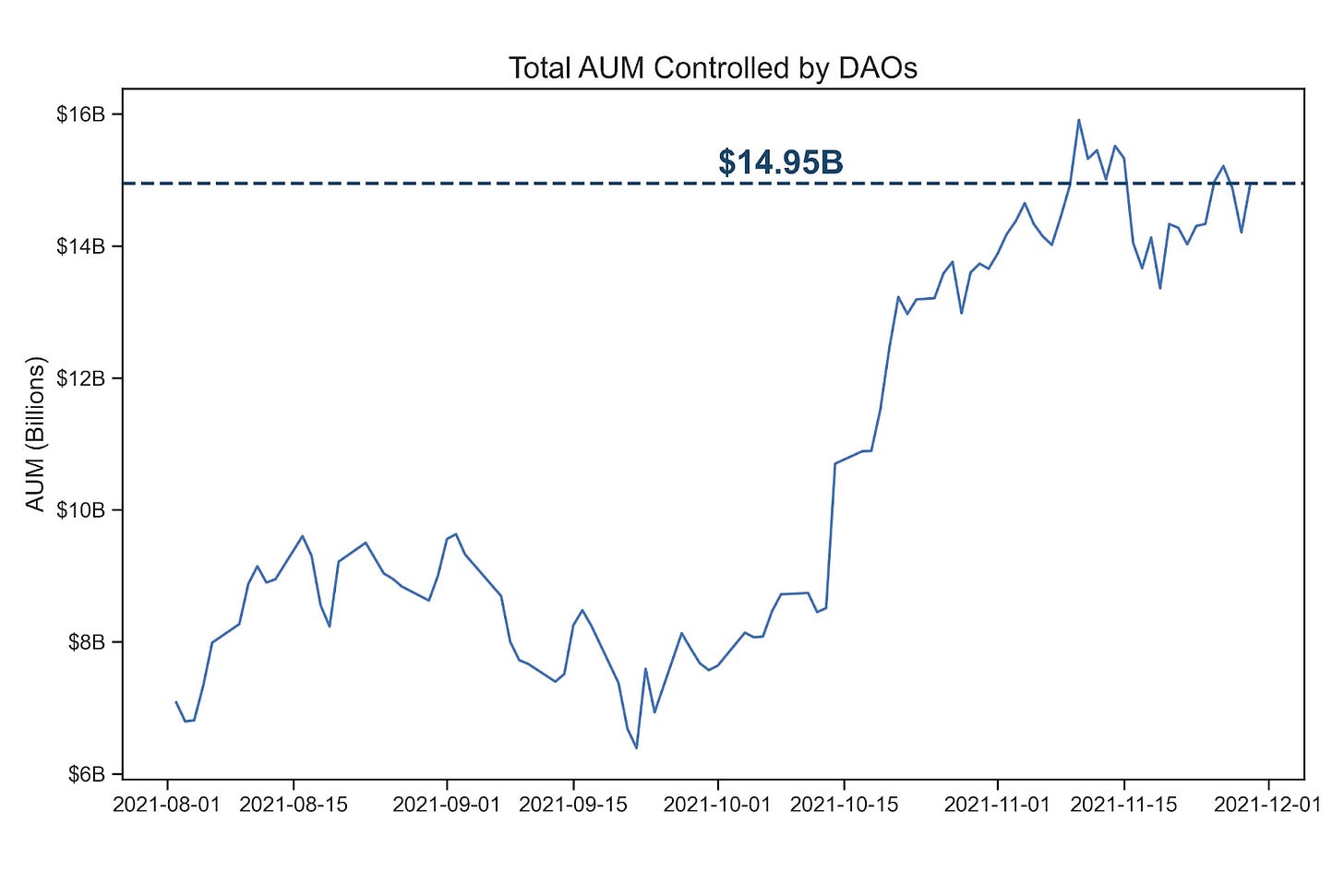 The momentum has continued strong. And these days, there are hundreds of DAOs managing tens of billions of dollars in assets. The past three months have been particularly monumental, with assets locked (popular crypto metric TVL) into the ecosystem doubling from ~$7B to $15B.
