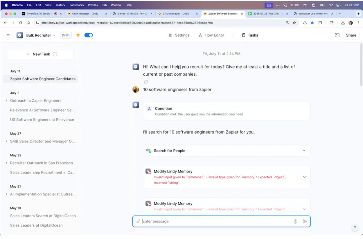 Agent Chain Reaction: Once that’s entered, Lindy spins up a group of mini-agents that: