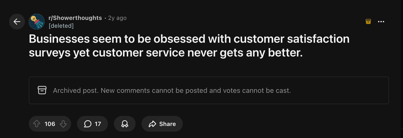 Each of those is a product decision you can make tomorrow. Compare that to “Great product, love it!” from a satisfaction survey.