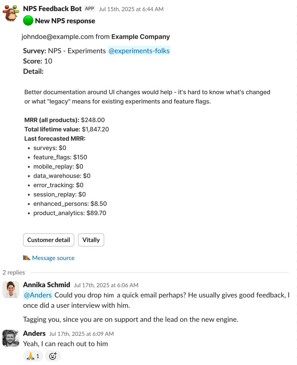 Every survey response at PostHog pipes into a dedicated Slack channel instantly. Someone responds within minutes. Not automated. Human.