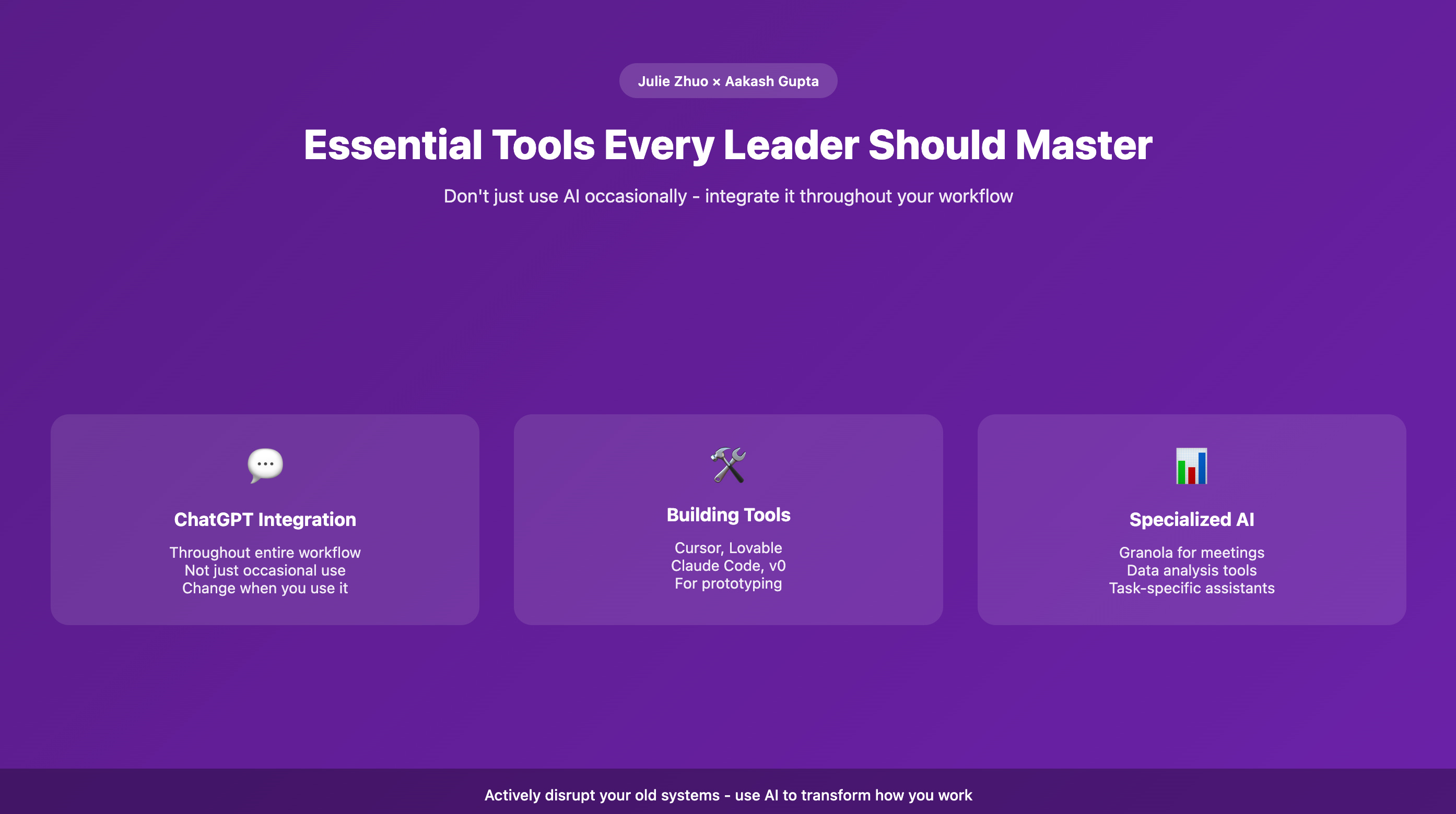 AI changes everything. As Julie puts it: "The whole promise of what AI enables is that each individual person can do more than they've ever been able to do before."