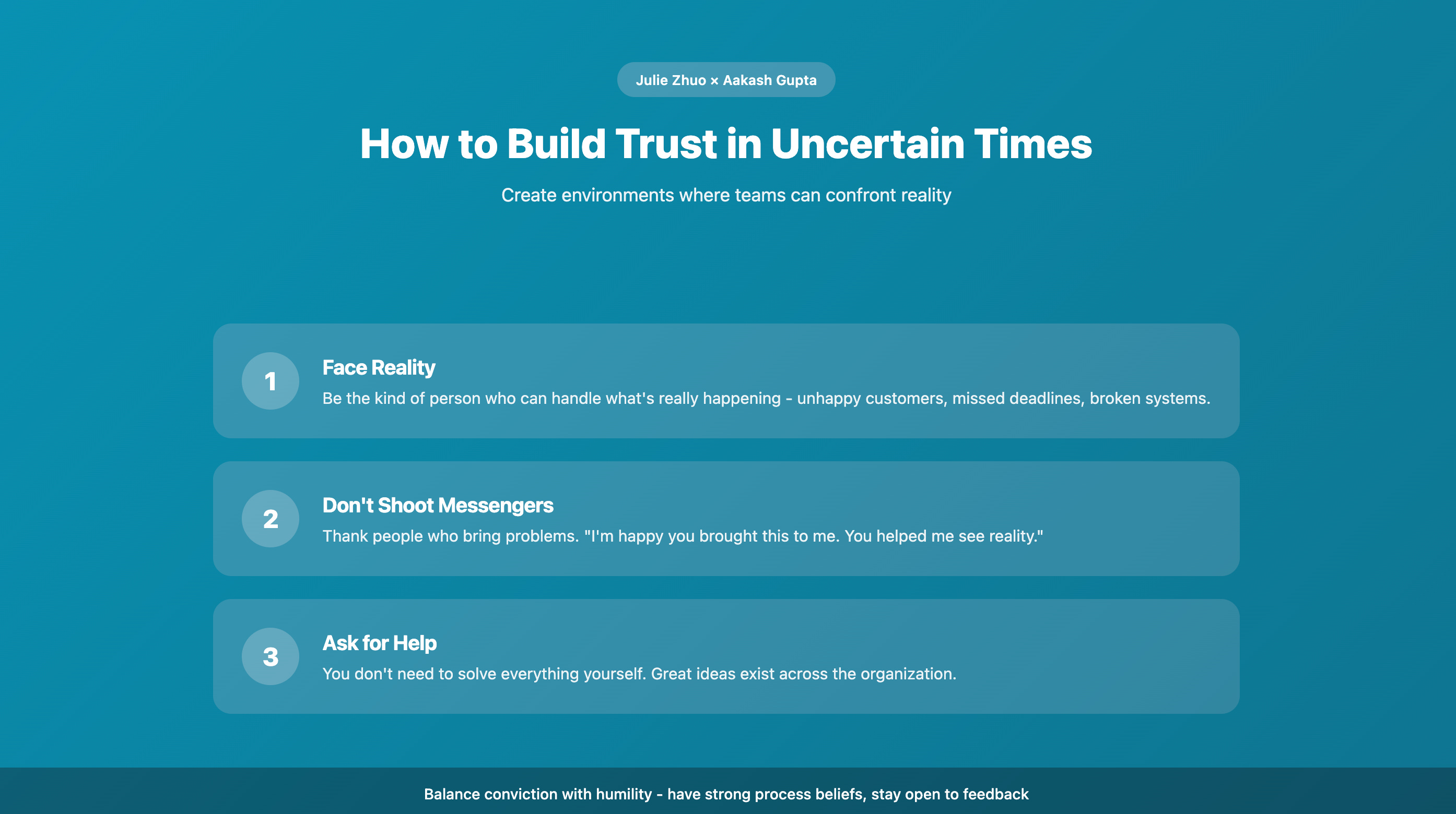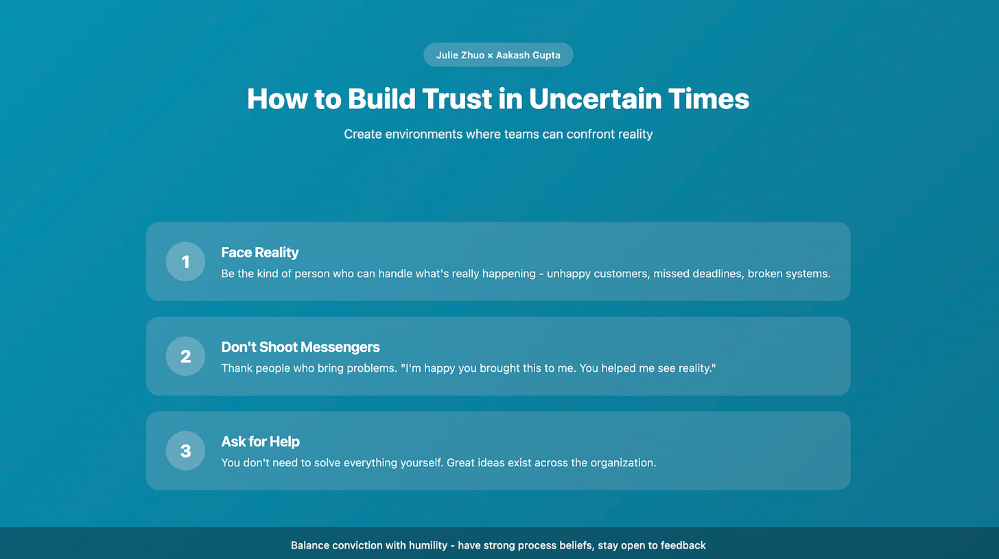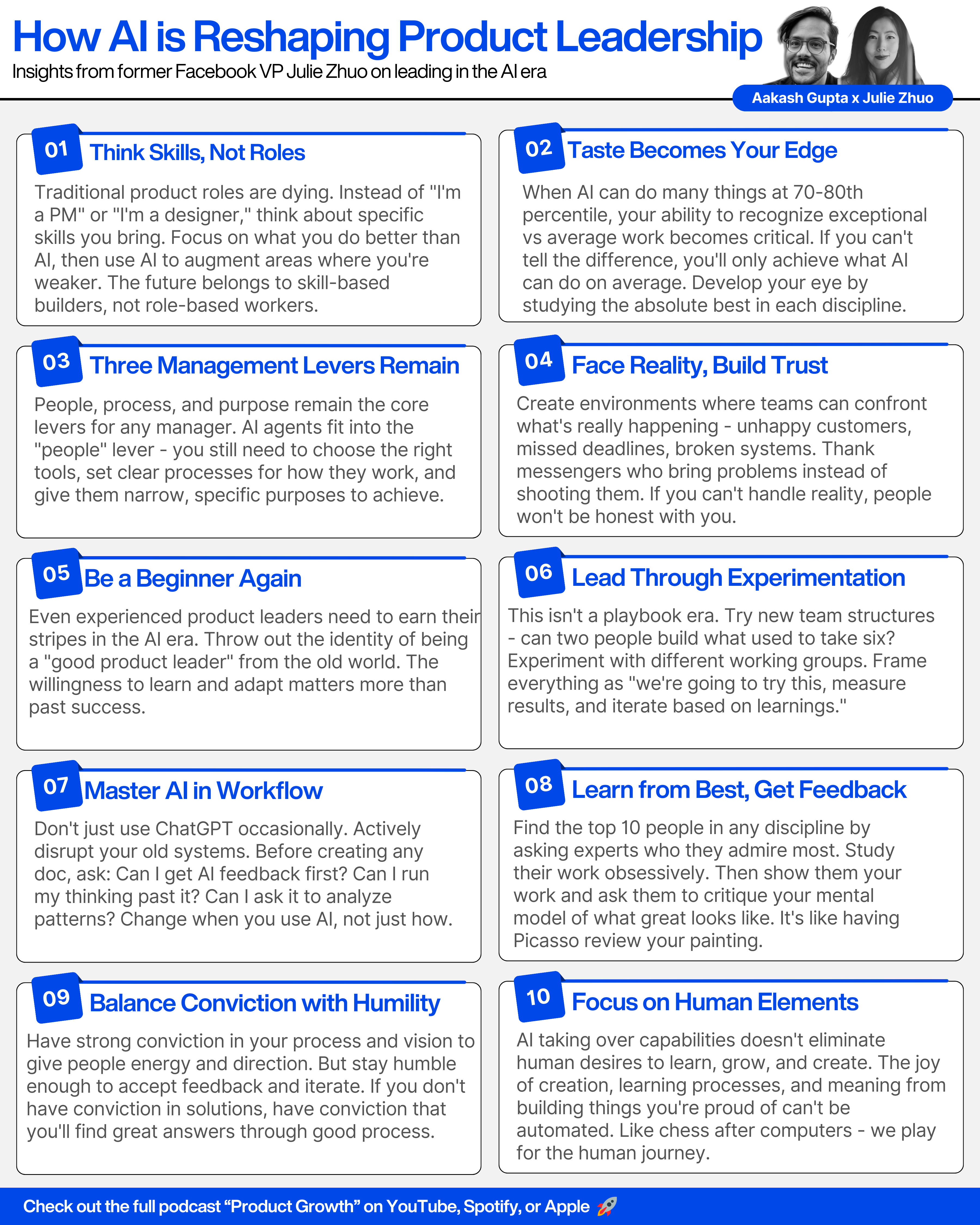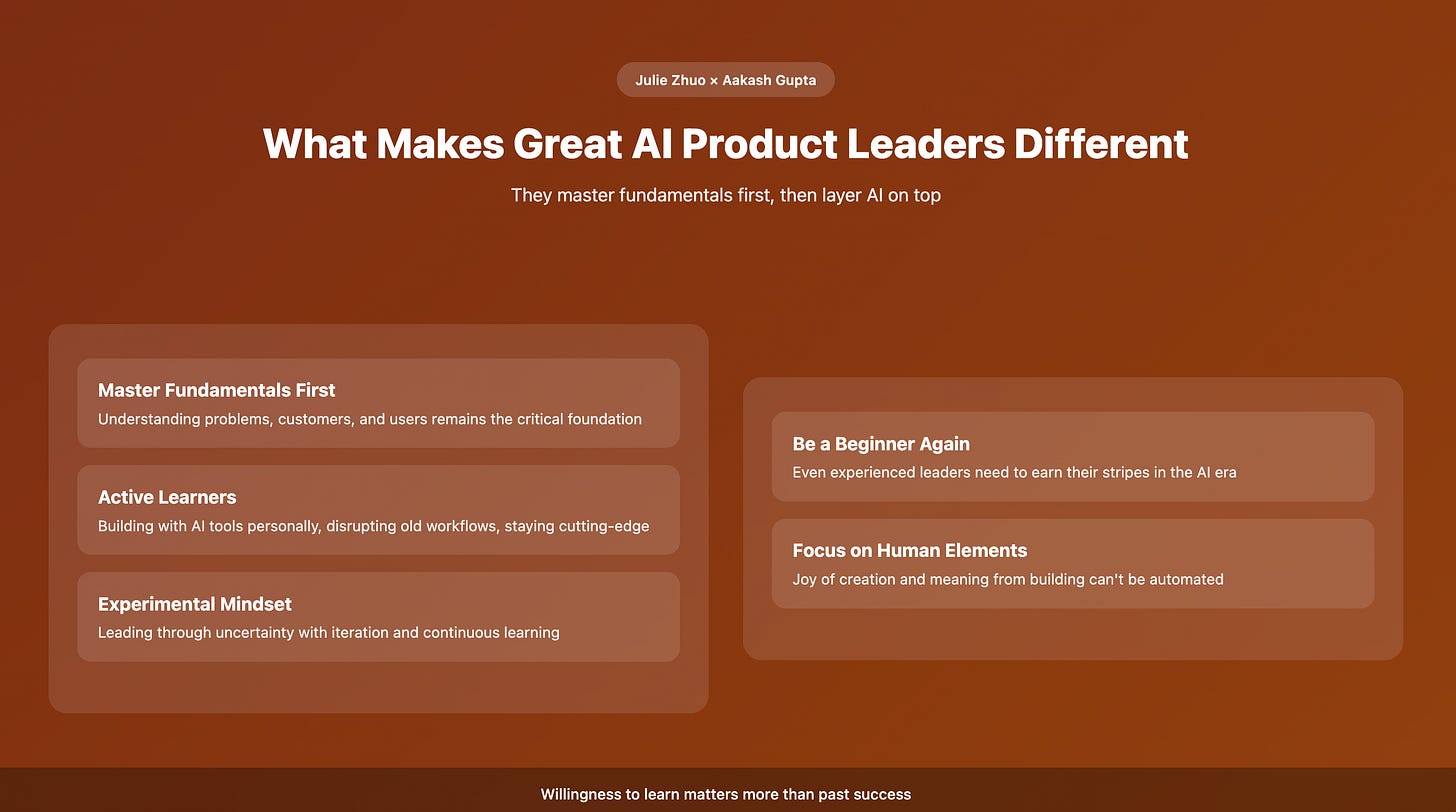 They embrace being beginners again. "We're all beginners here again. Let's throw that identity of being good product leaders out the window. Are we actually good product leaders in this new era? I don't know. I think we have to earn that."