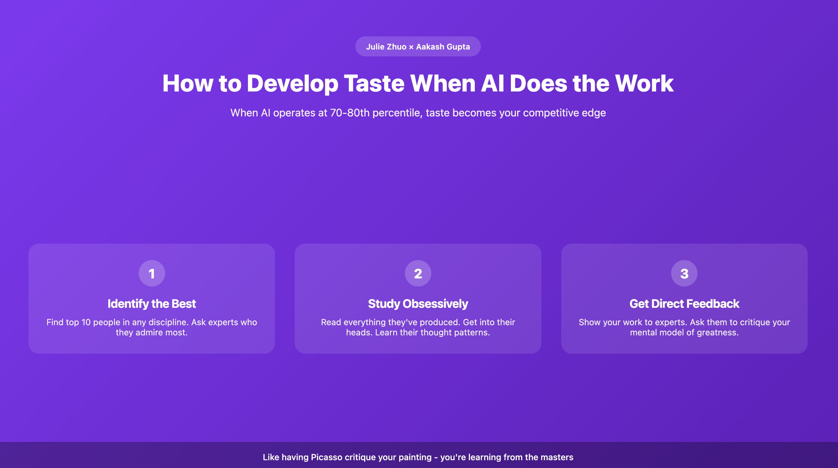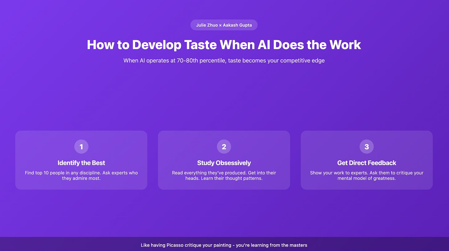 When AI can do many things at an average-to-good level, the difference between great work and average work comes down to knowing whether the AI is producing exceptional or mediocre output.