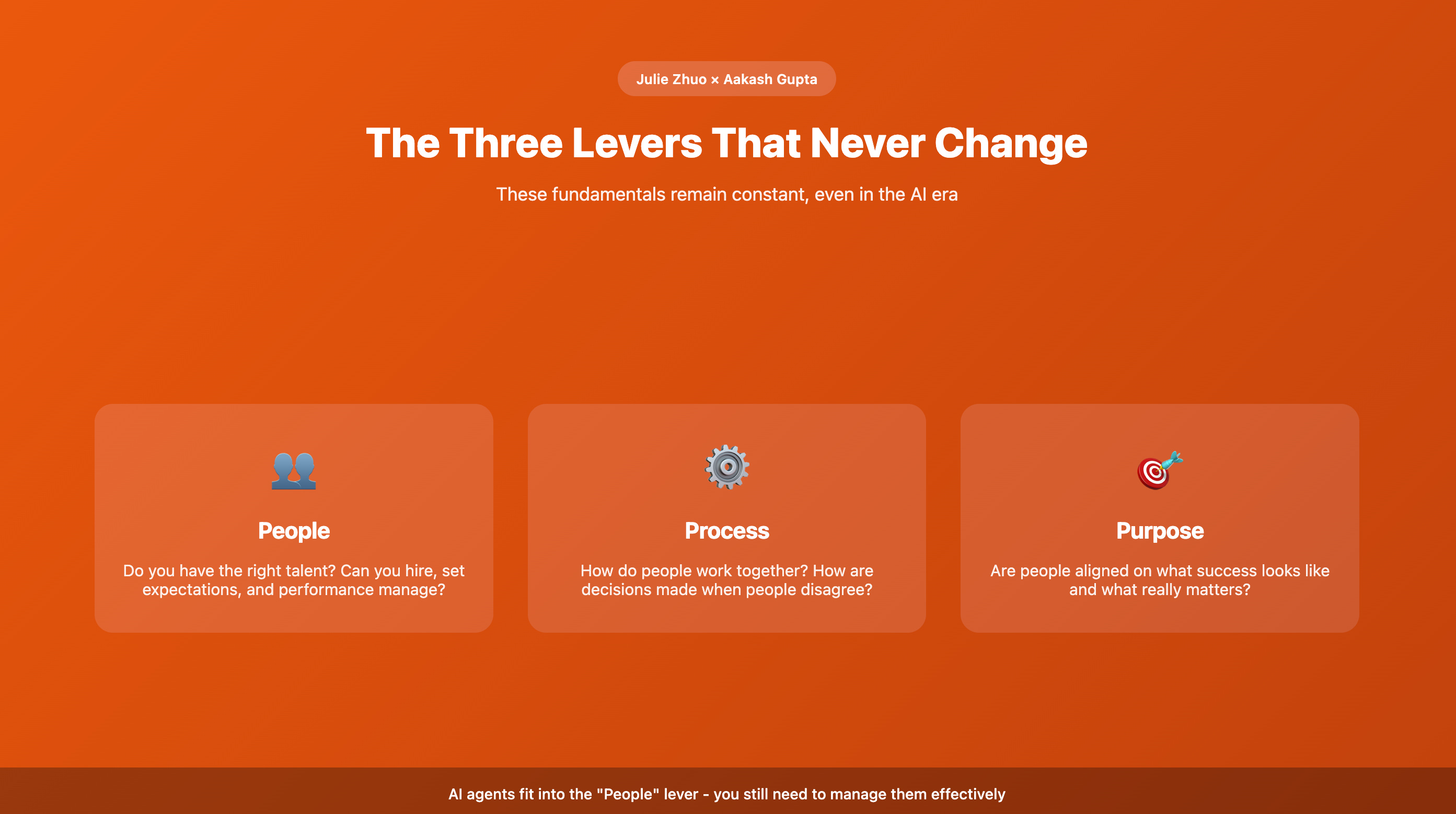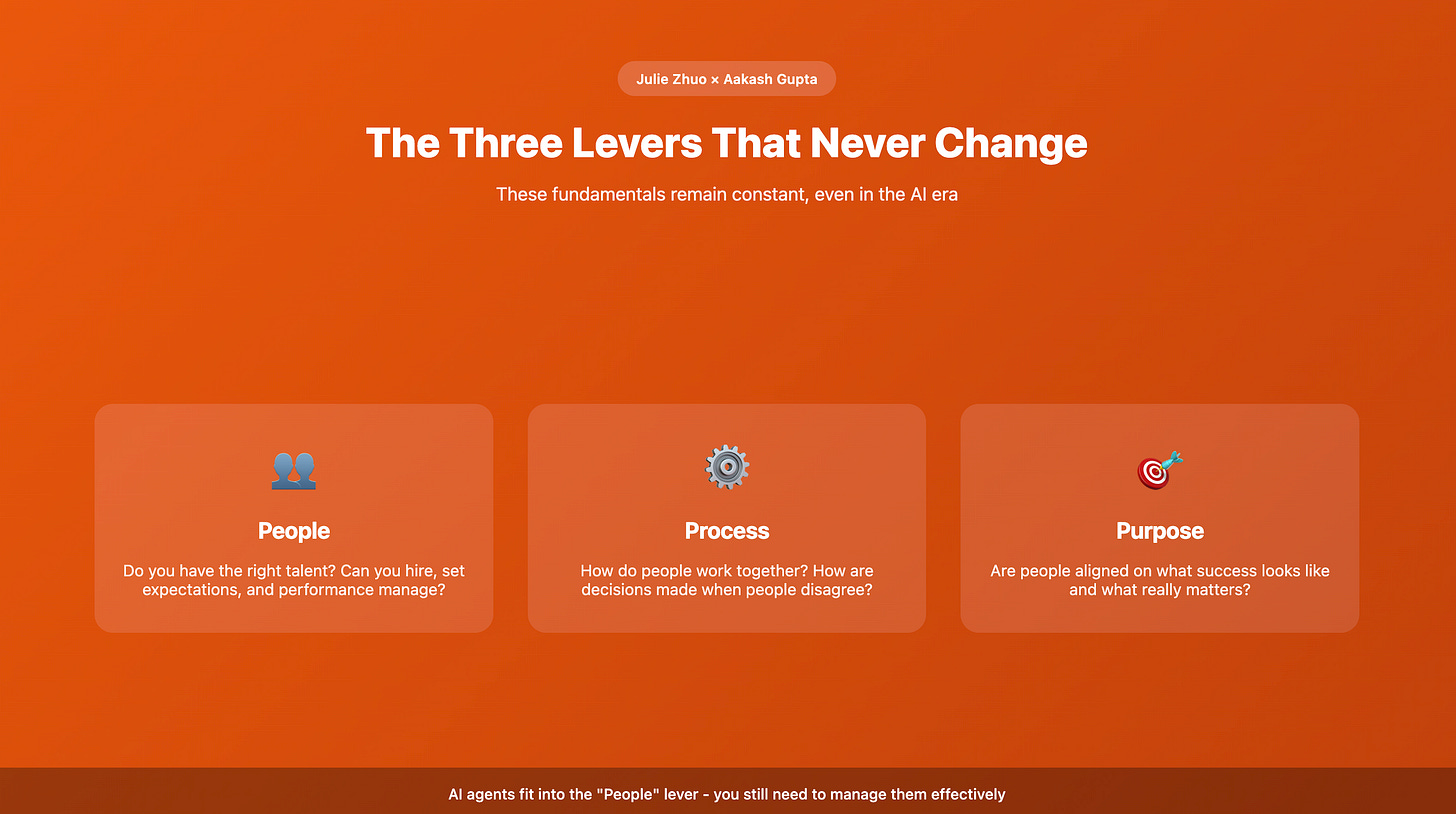 AI agents fit into the "People" lever. You have to pick the right tools or models with the right skill sets for your purpose.