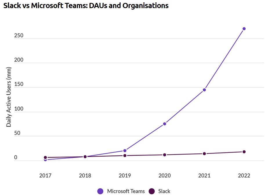 The enterprise game is a sales game. MS realized this largest part of the market required sales-led growth. And crushed Slack’s product-led growth in the process.