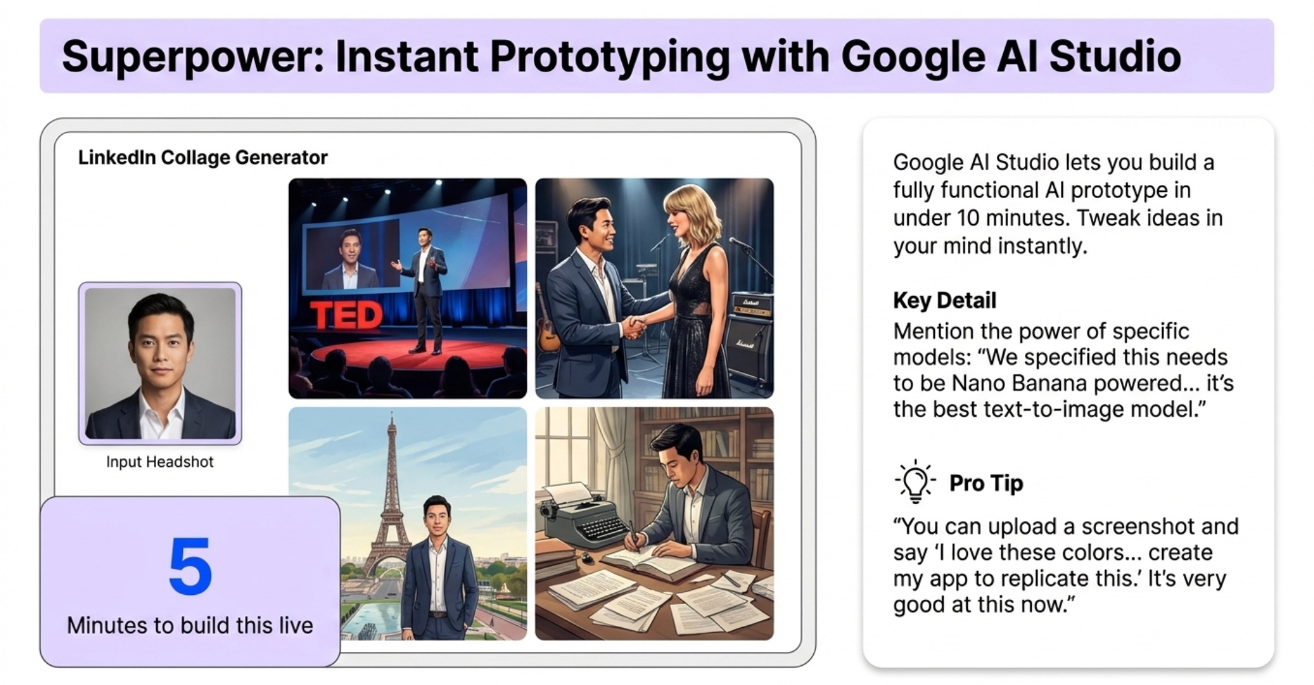 Google AI Studio lets you build AI prototyping where under 10 minutes you have a fully functional app. It makes tweaking the idea you have in your mind super quick.