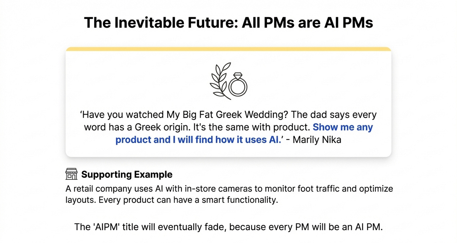 Why? Because some people push back. They say 90% of PMs aren’t AI PMs. They’re not working on AI features or AI companies. They’re not gonna become AI PMs.