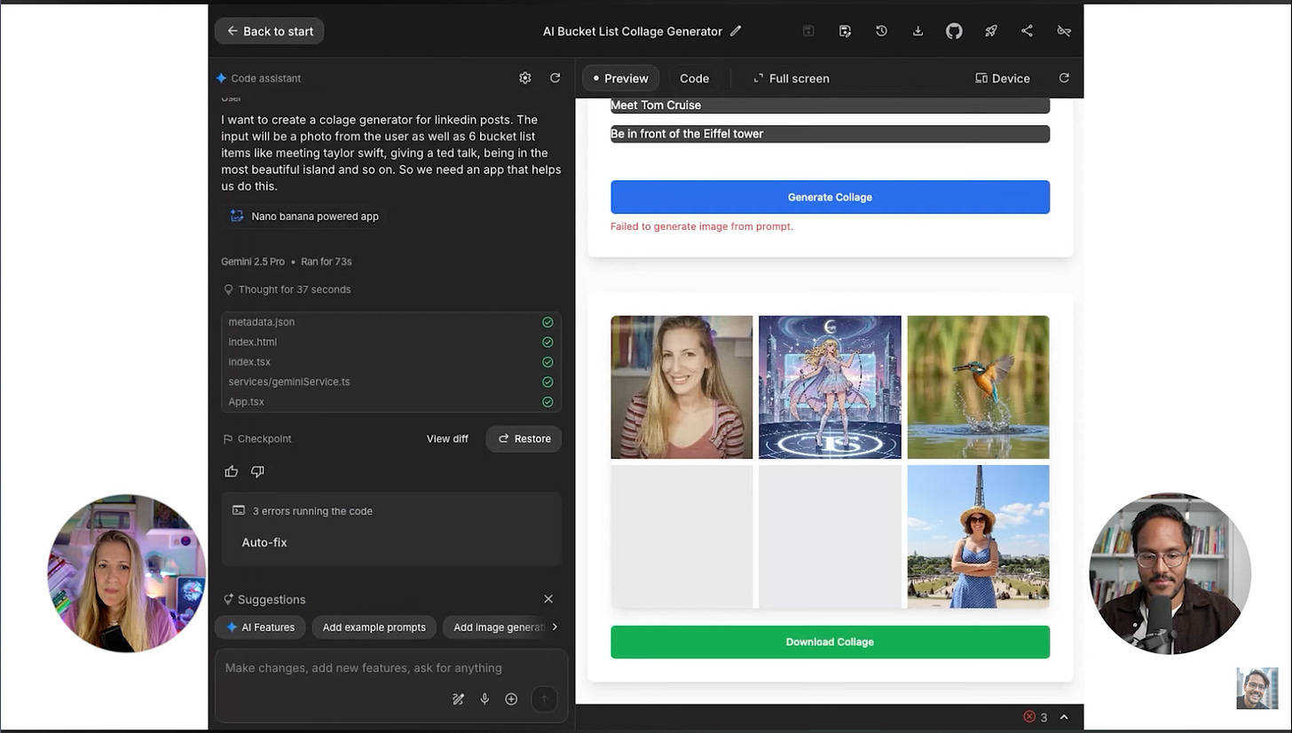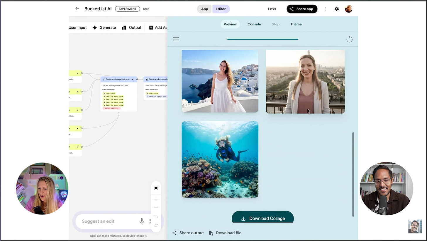 In the live demo, we created the exact same use case. Given a photo of yourself, generate a collage of 4 photos with different bucket list scenarios.