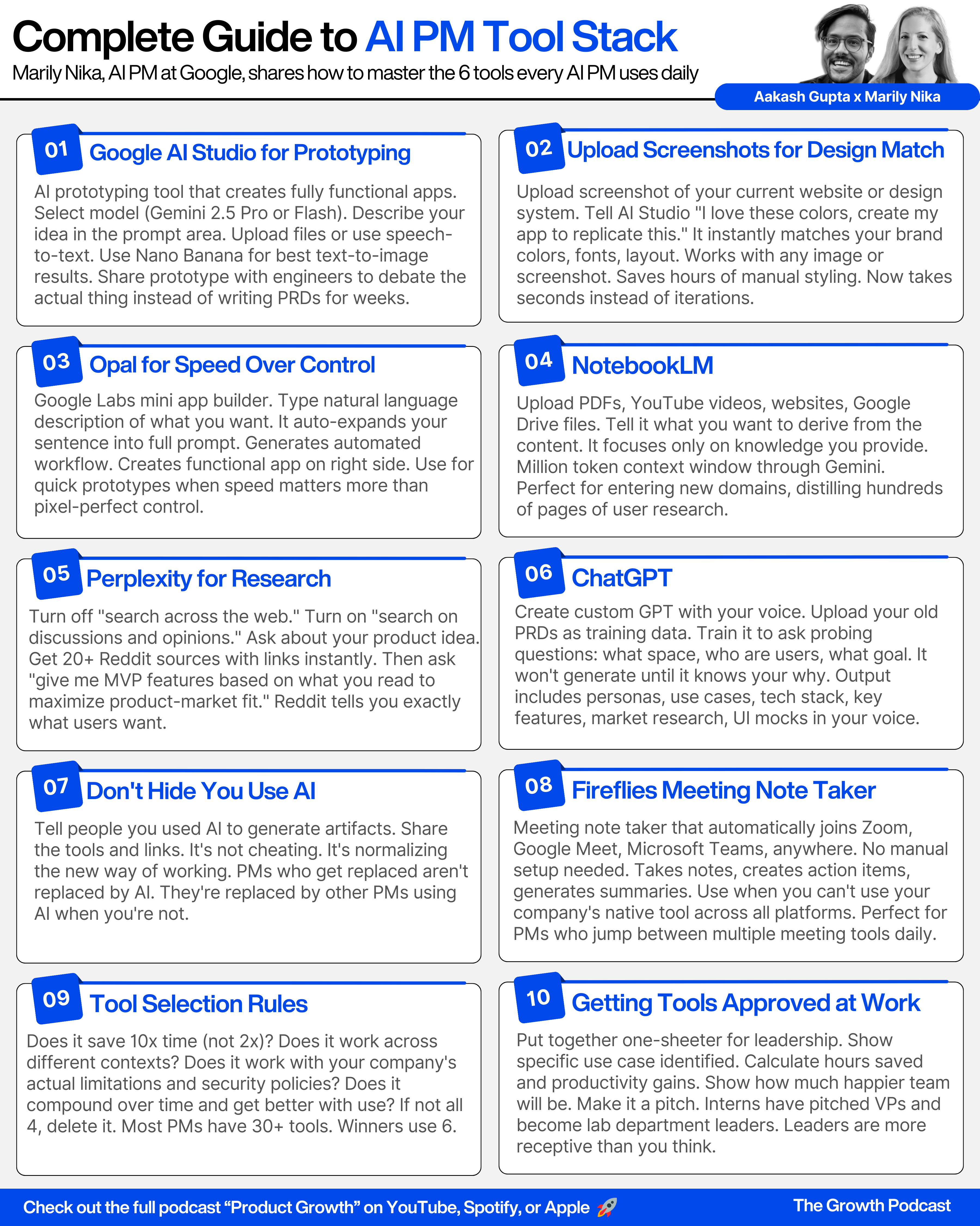 Today, she’s back with a completely new episode. She’s dropping every AI tool she uses daily as an AI PM.