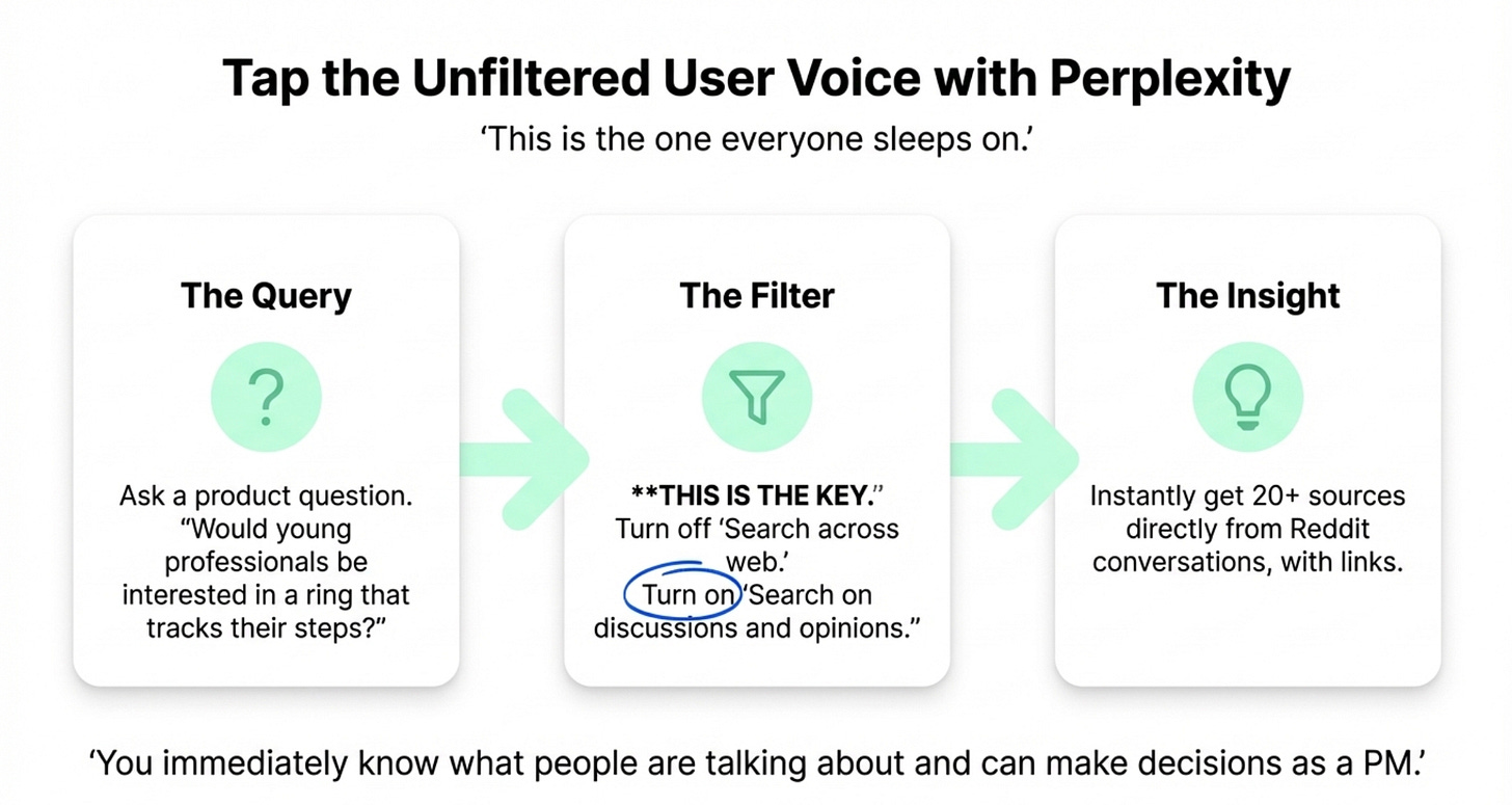 This is the one everyone sleeps on. Perplexity has this little filter that changes everything for user research.