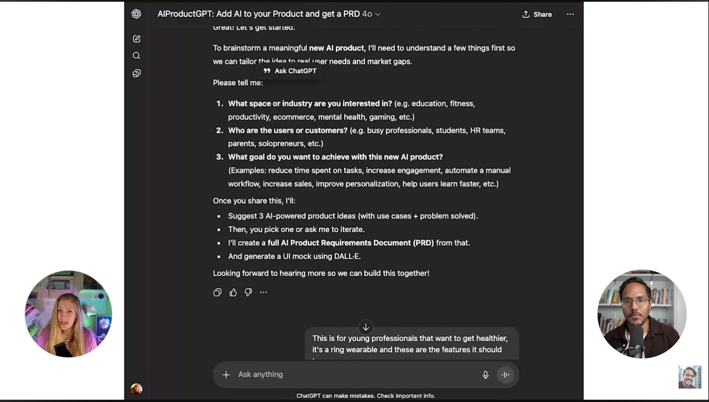 We used Perplexity to get a list of features for a fitness ring. Then we copied that and went to her PRD generator.