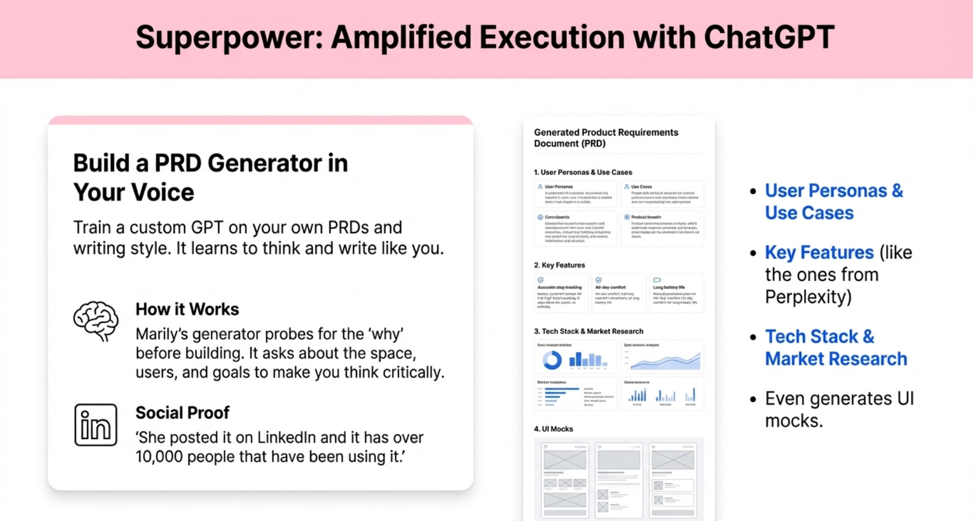 Marily’s response. She’s overtrained this to really have the most important things and to sound like her. She even uploaded a bunch of her PRDs that she could share externally.