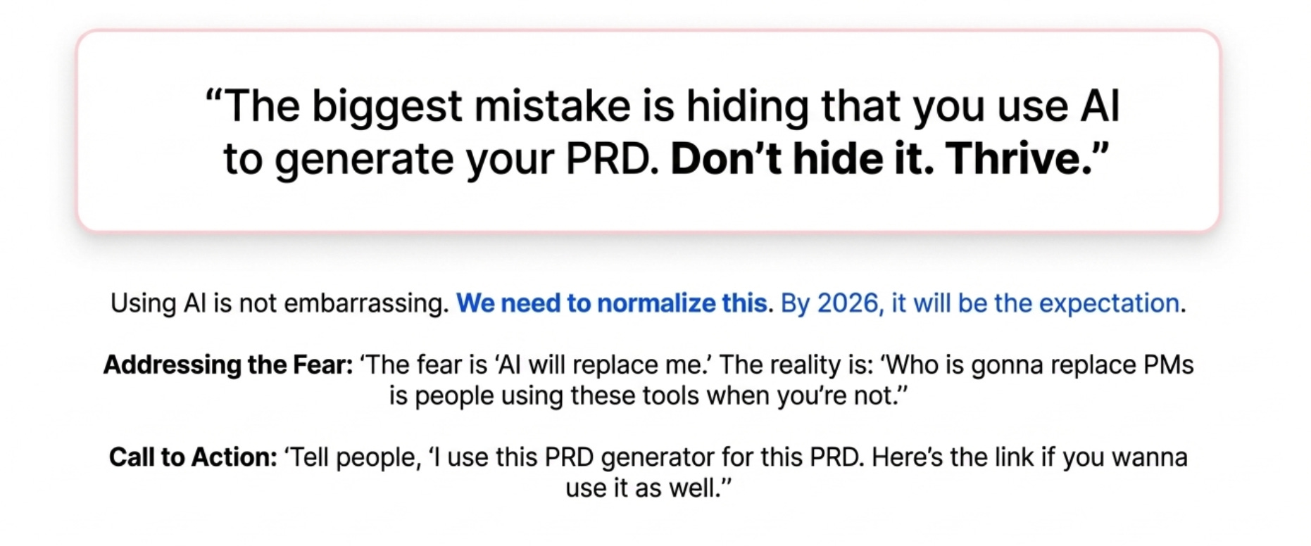 The biggest mistake is hiding that you use AI to generate your PRD. Don’t hide it. Thrive.