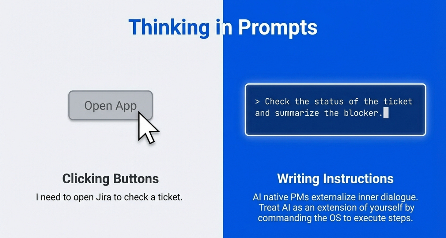 AI native PMs think “I need to do X. What are the instructions? What are the steps? What’s the best way to get this done?”