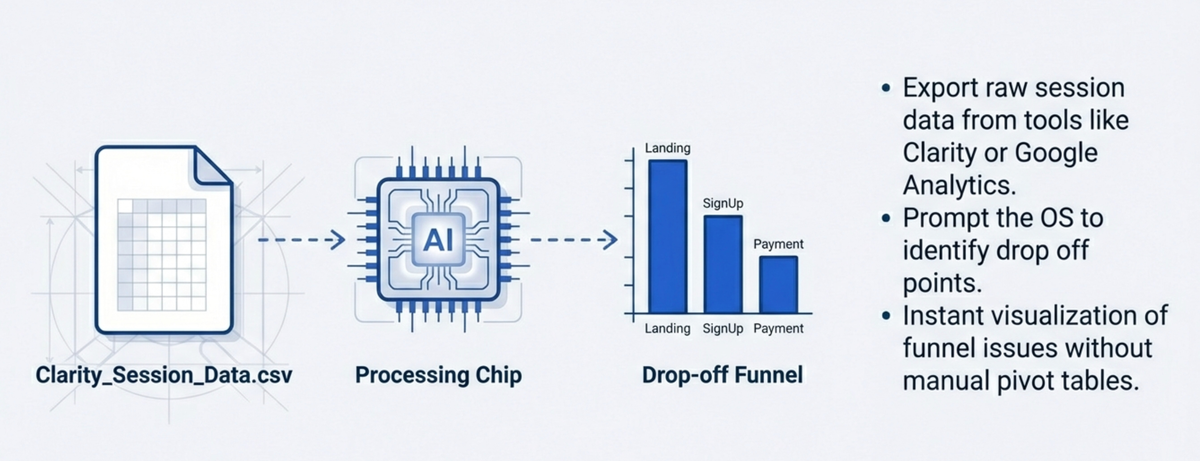 You need to understand why conversion dropped last week. You have Clarity session data but your analytics tool doesn’t have the exact report you need.