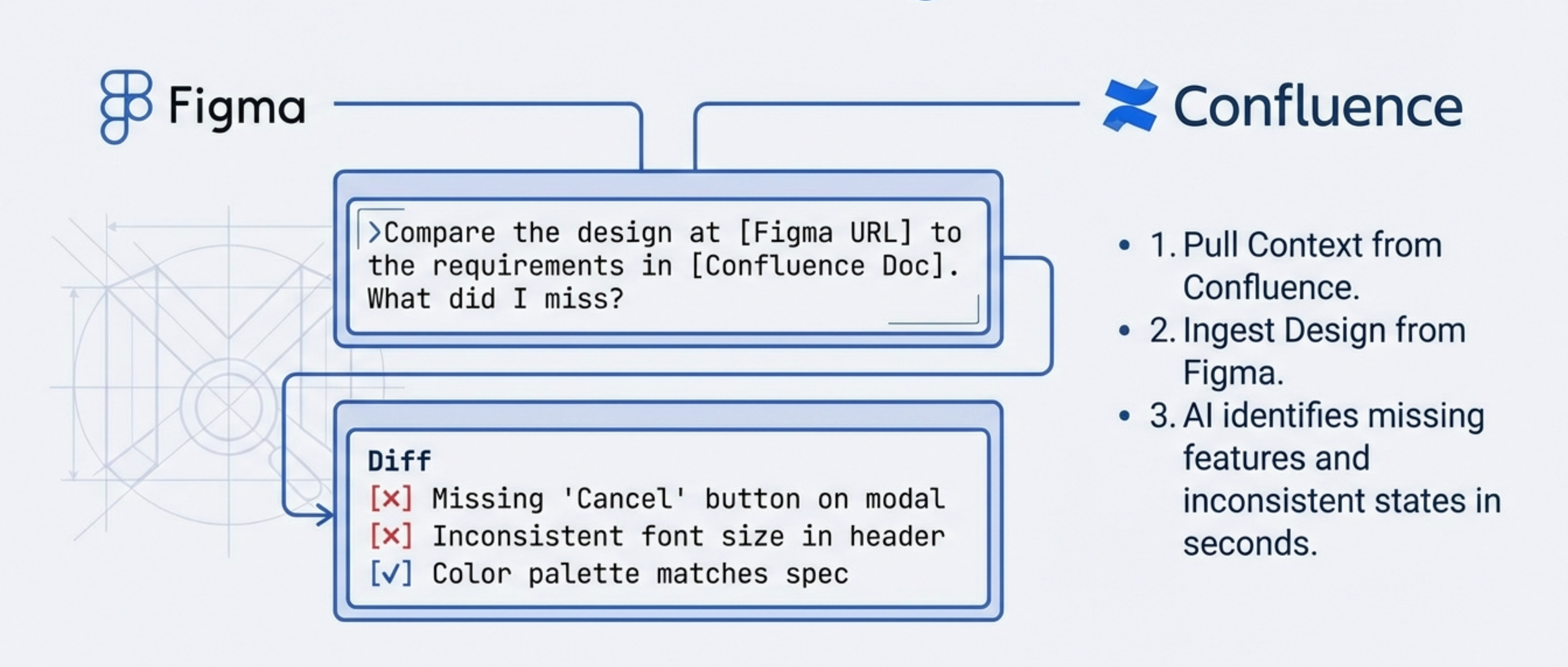 He’s not opening JIRA. He’s not opening Figma. He’s not manually cross-referencing.