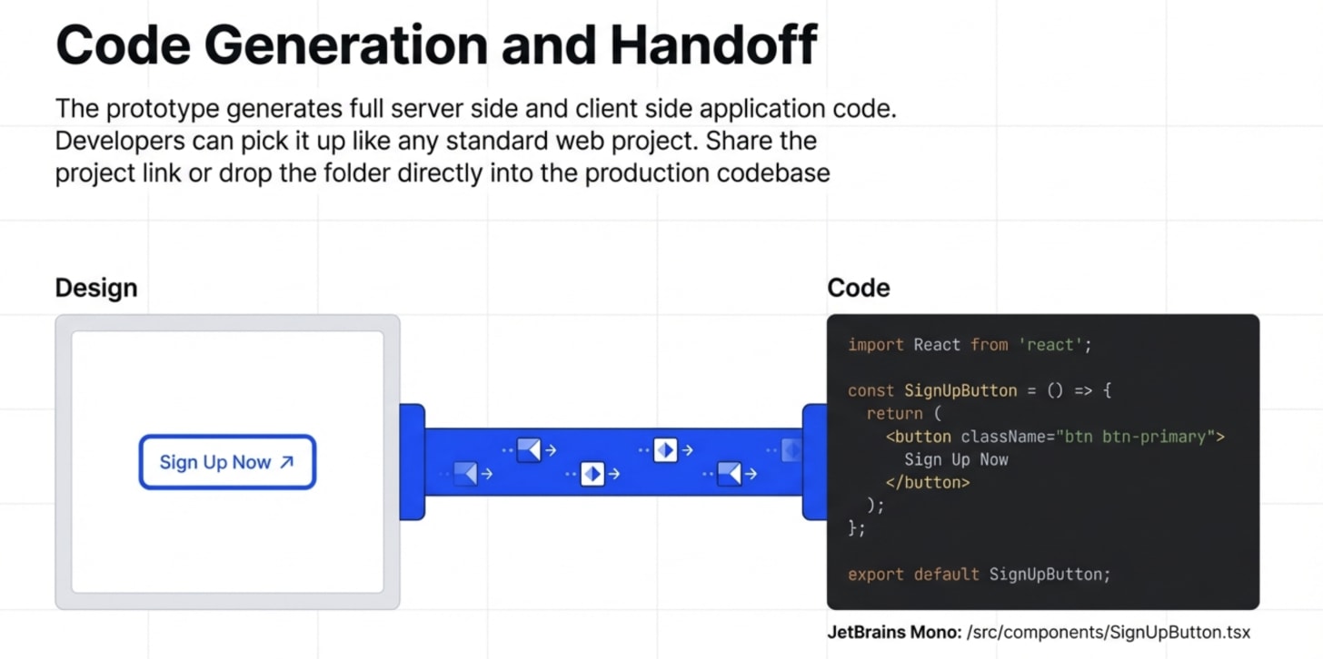 A functional prototype built in a tool like Dazl isn’t a throwaway demo. It’s a full server-side and client-side application. React components, standard file structure, nothing proprietary. A developer on your team picks it up and it looks like any other web project they’ve worked on.