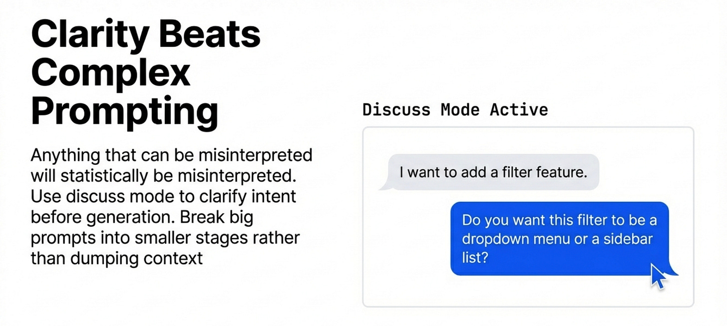 Any ambiguity in your prompt will get exploited. Not every time - but statistically, any instruction that can be read two ways will eventually be read the wrong way. When that happens in a prototyping tool, the AI runs with its wrong interpretation at full speed, confidently, until it’s done. It doesn’t stop to ask.