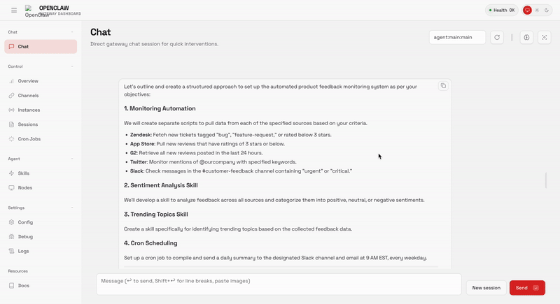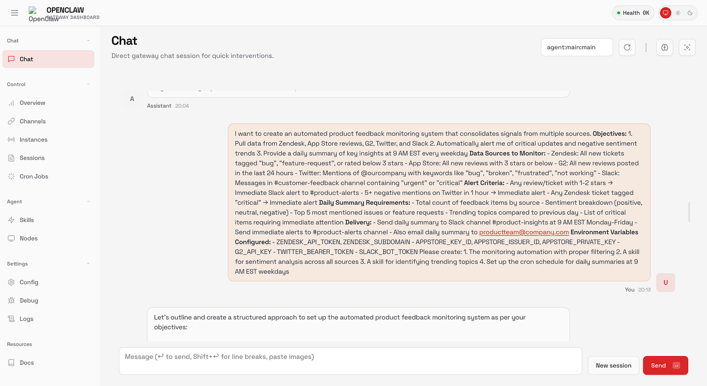 OpenClaw now pulls everything into one dashboard; sentiment tracked, patterns flagged, critical issues alerted. What used to take me 2 hours of tab-switching takes 15 minutes of reviewing a summary.
