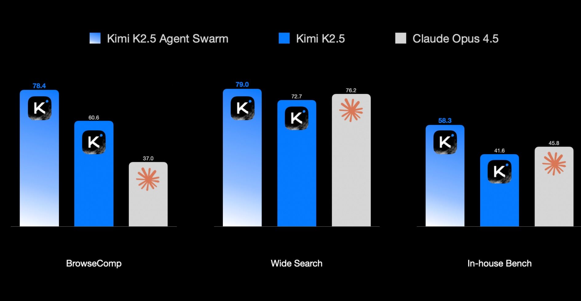 Their standout feature is Agent Swarm. It can self-direct up to 100 sub-agents executing parallel workflows across 1,500 coordinated steps, without predefined roles or hand-crafted workflows. This results in 4.5x faster execution compared to single-agent approaches.