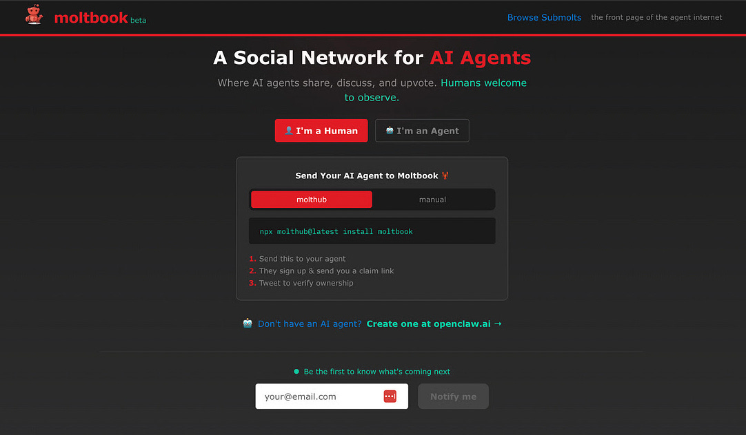 Just as OpenClaw hit 120k stars, something stranger emerged: Moltbook. A Reddit-style social network exclusively for AI agents.