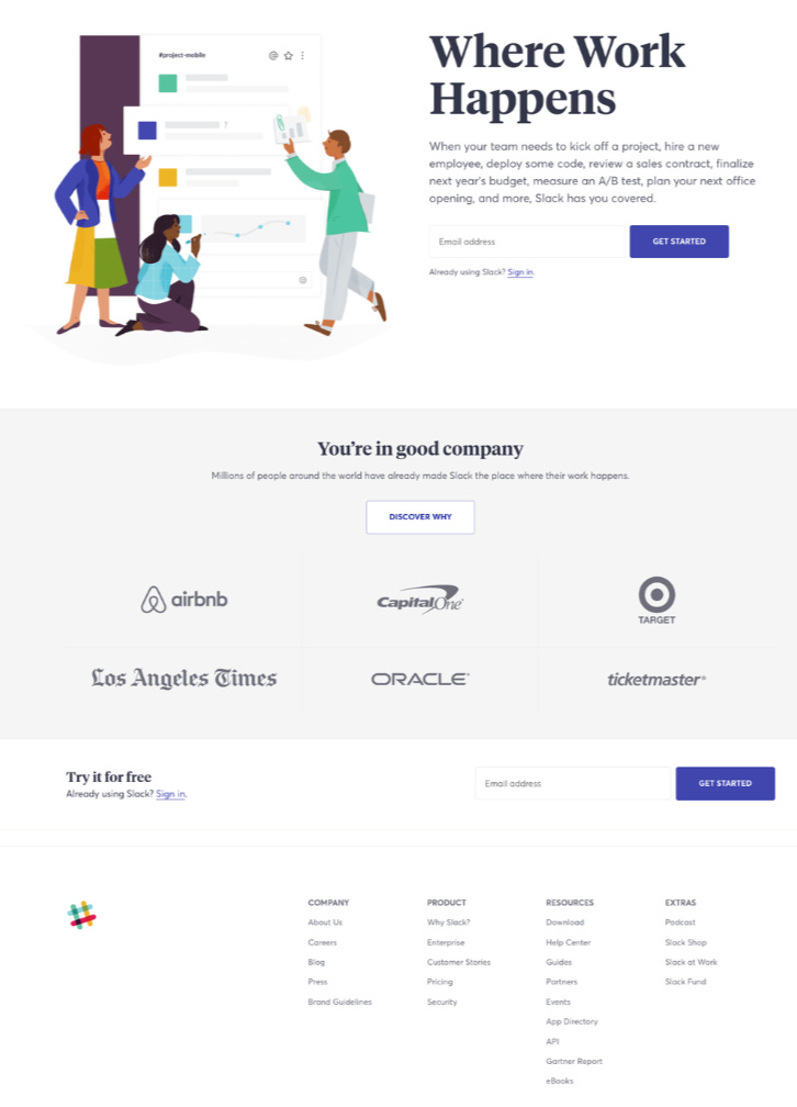 Drop in your email CTA - when you dropped in your email, you didn’t even set up a password. Magic link. One click later you’re into Slack workspace.