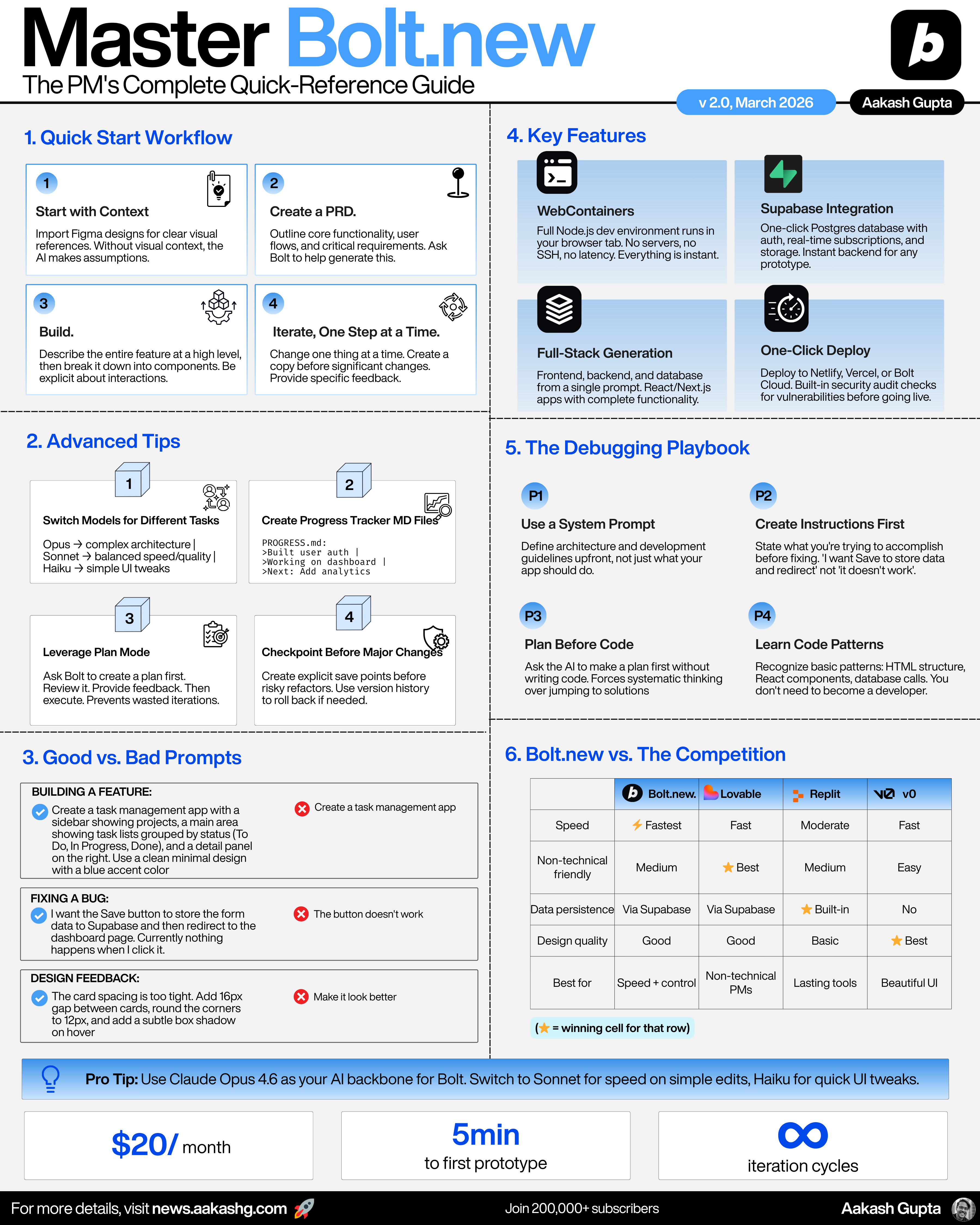 For the full interactive version with comparison tools, tool picker quiz, animated walkthroughs, and step-by-step workflows to build your first prototype or PM portfolio, check out the Learn Bolt.new Guide.