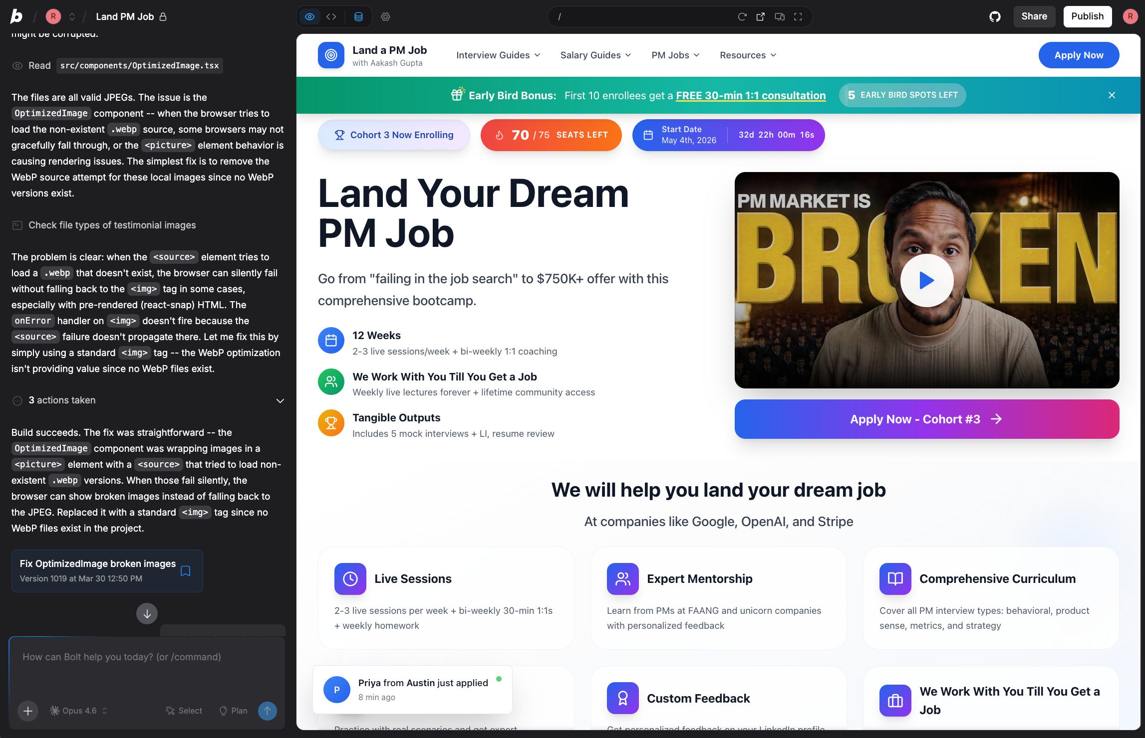 I host my entire landpmjob.com cohort platform on Bolt.new: