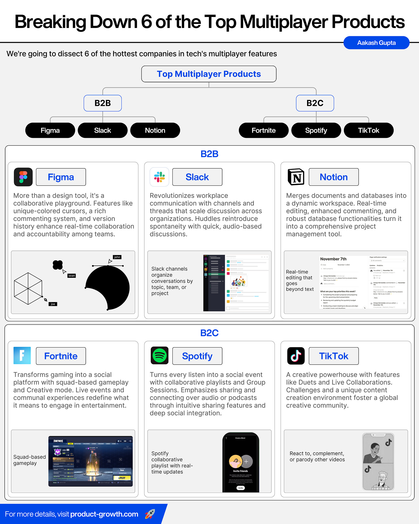 B2B: Figma, Slack, Notion B2C: Fortnite, Spotify, TikTok