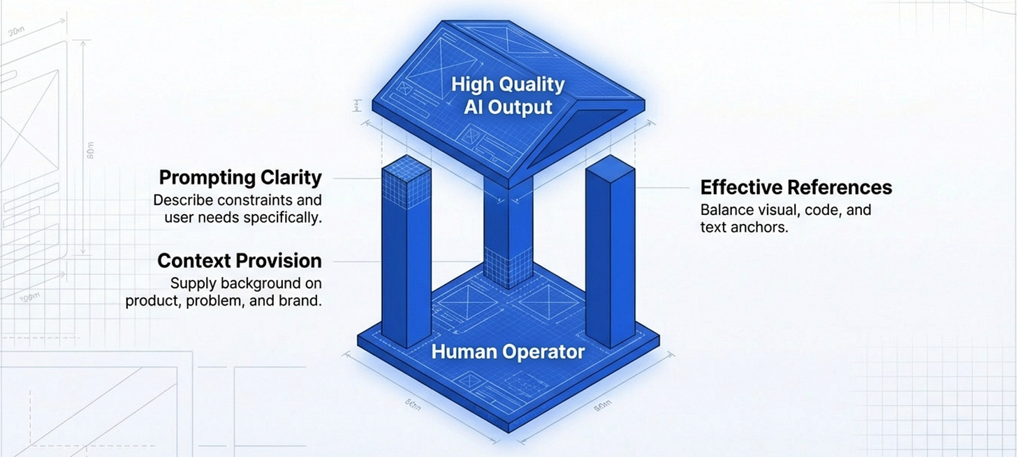 The systems and processes for how you actually work with AI design tools day-to-day. This is about becoming fast and effective.