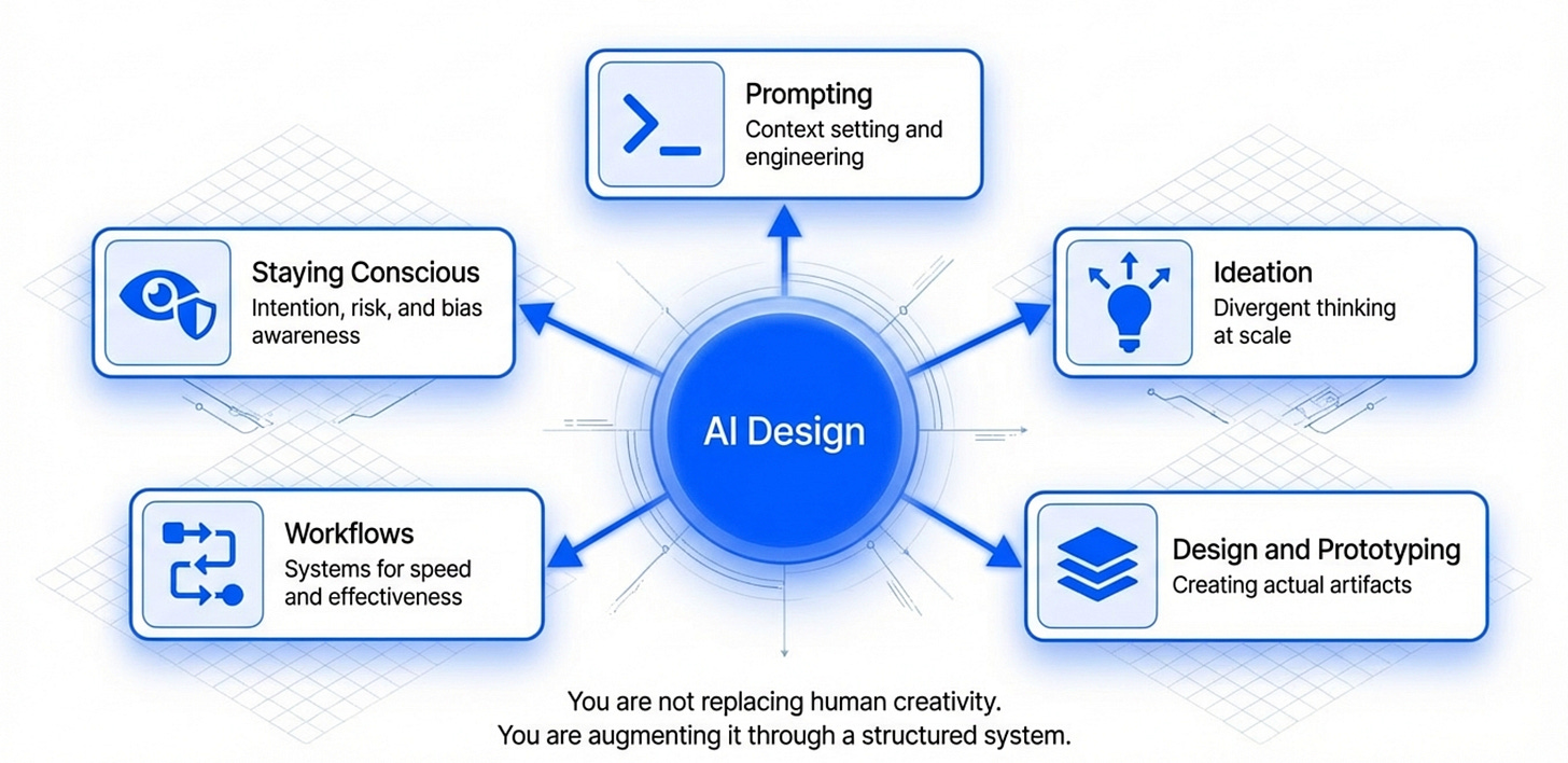 Designing with AI sounds broad because it is. But there’s structure to it.