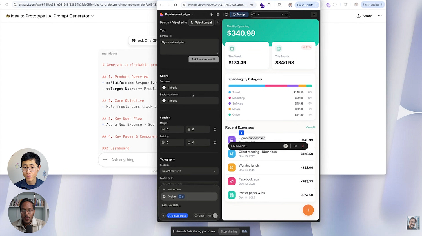 Before pasting into Lovable, Xinran pastes the spec into Claude as a sanity check. He doesn’t expect great design from Claude.