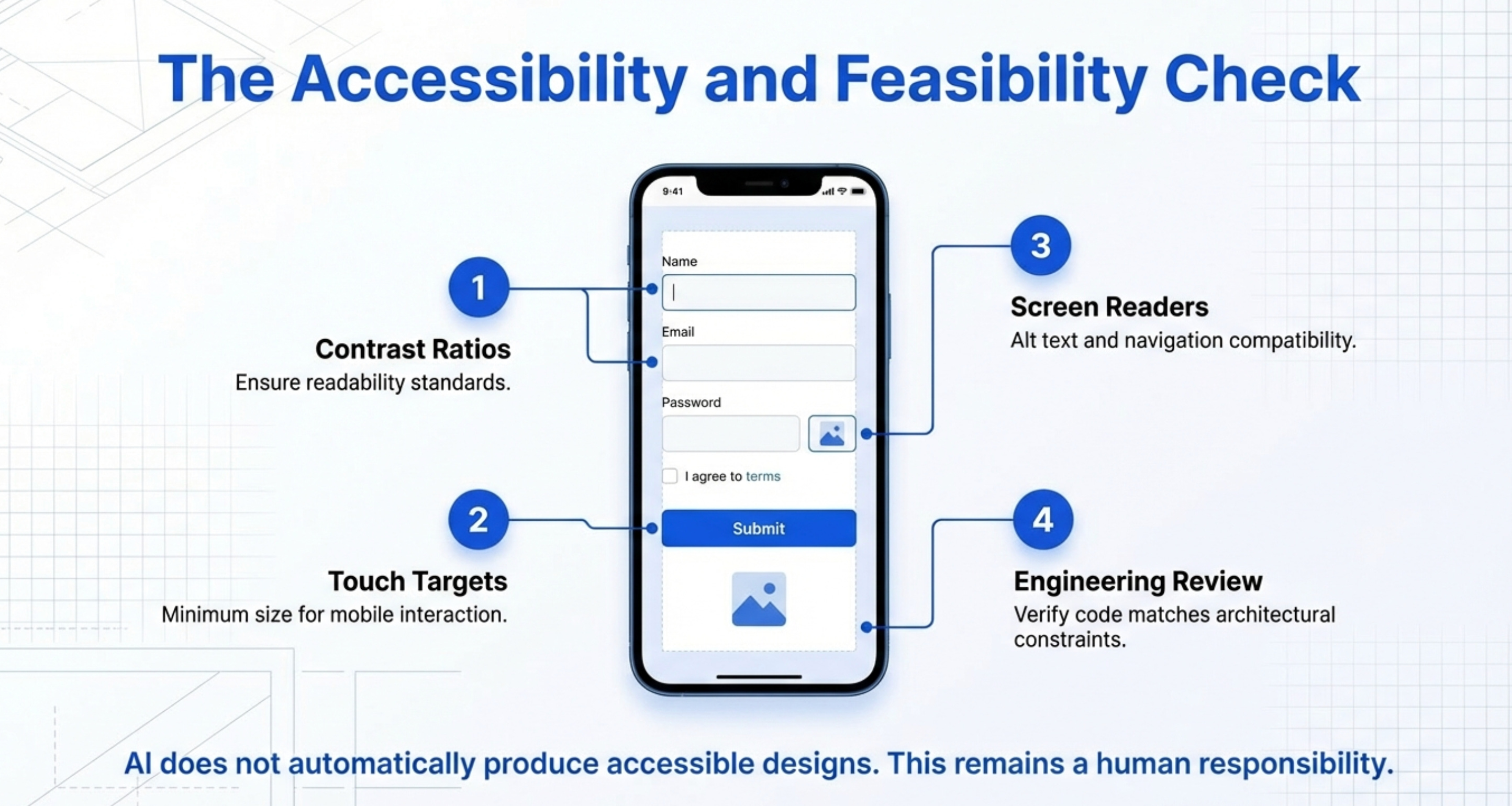 Is the design accessible? Is it readable for different groups of people? Does it follow established interaction patterns?