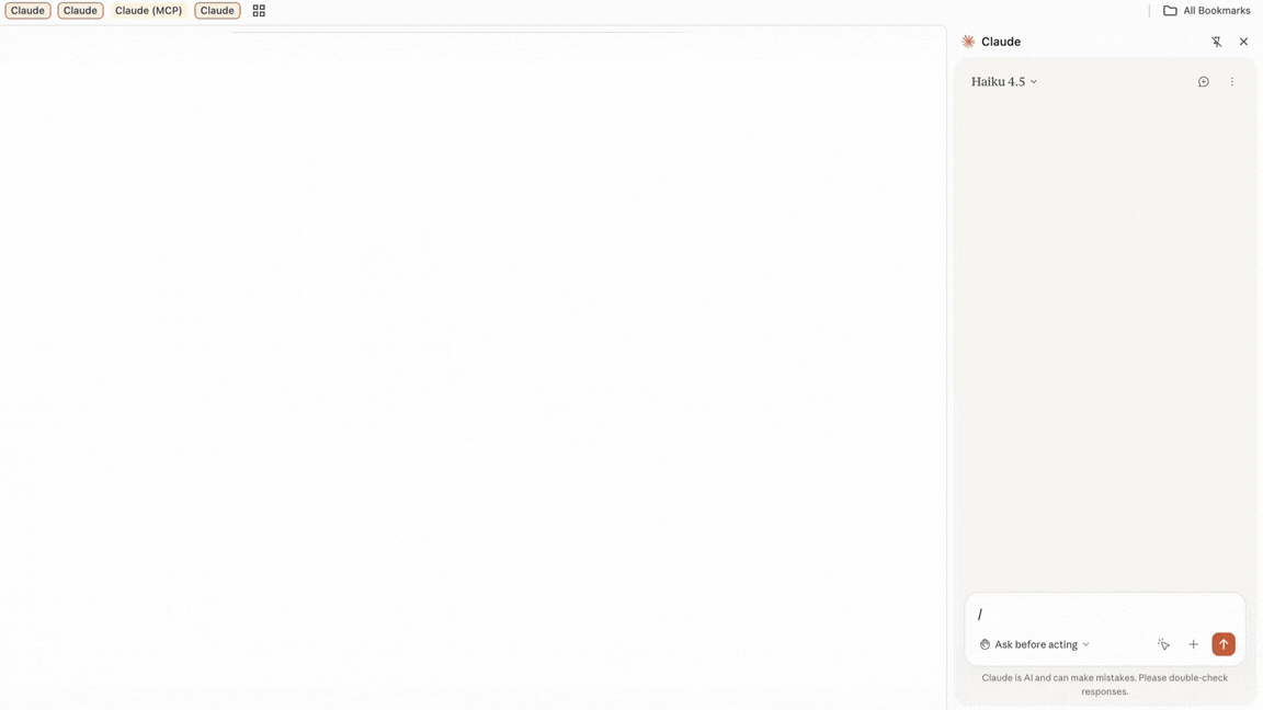 It opens as a side panel inside your browser. From there, Claude can read pages, click buttons, fill forms, navigate between tabs, and manage multiple tabs at once.