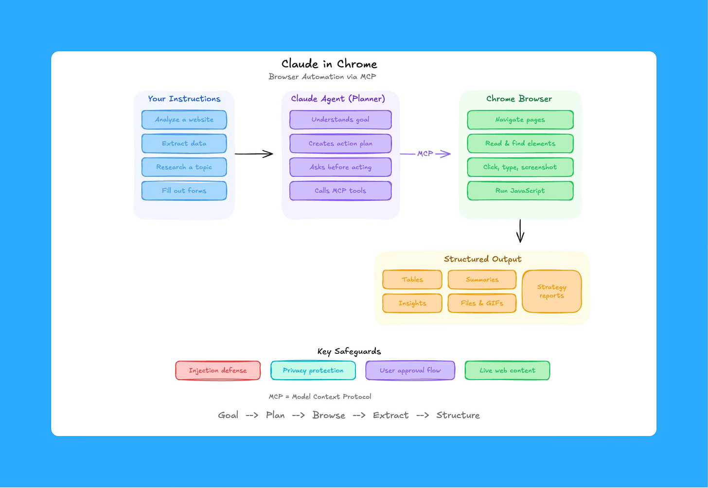 Chrome handles the web research. Cowork handles local file creation. Together they chain automatically.
