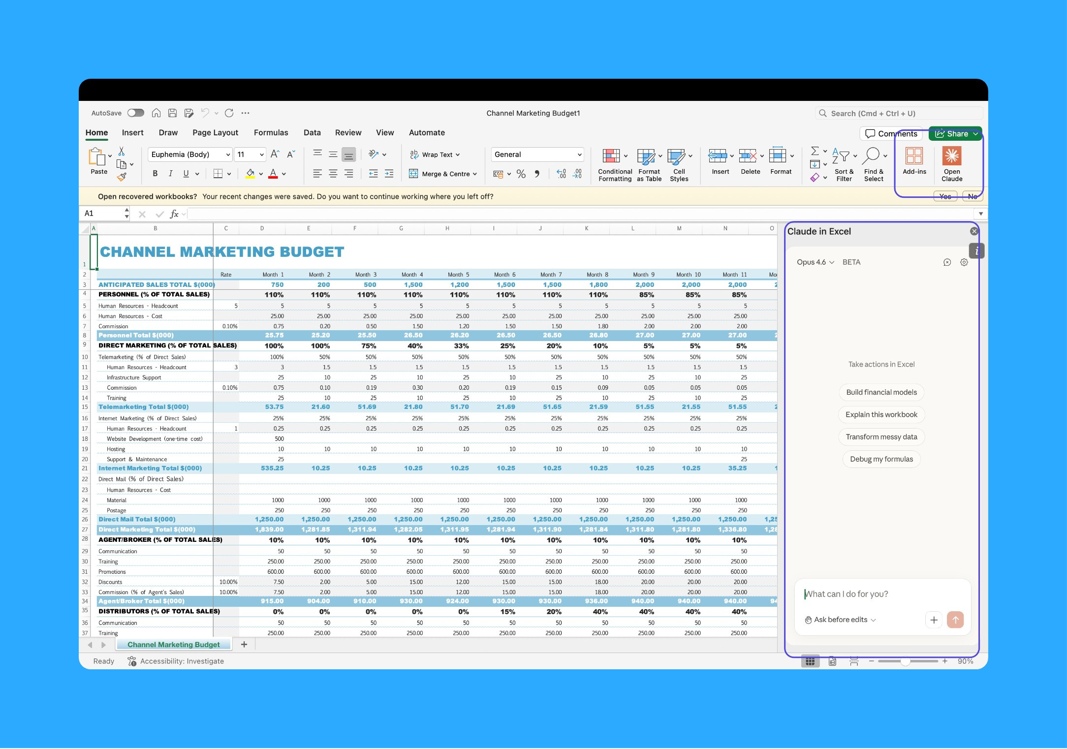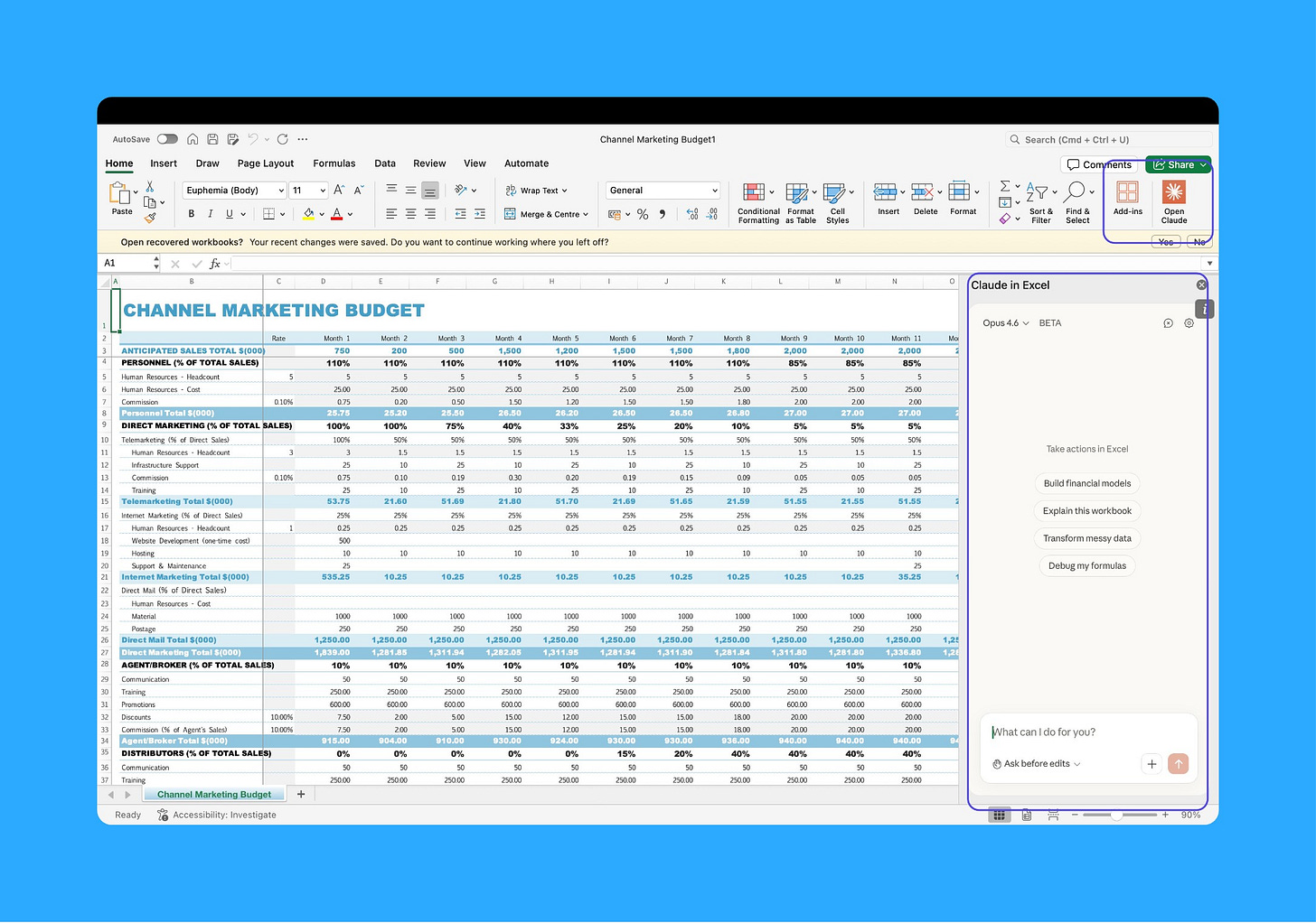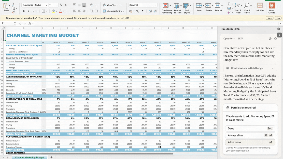 But here’s where it gets wild. Claude isn’t just available through Cowork anymore. It now lives inside Excel as a native add-in.