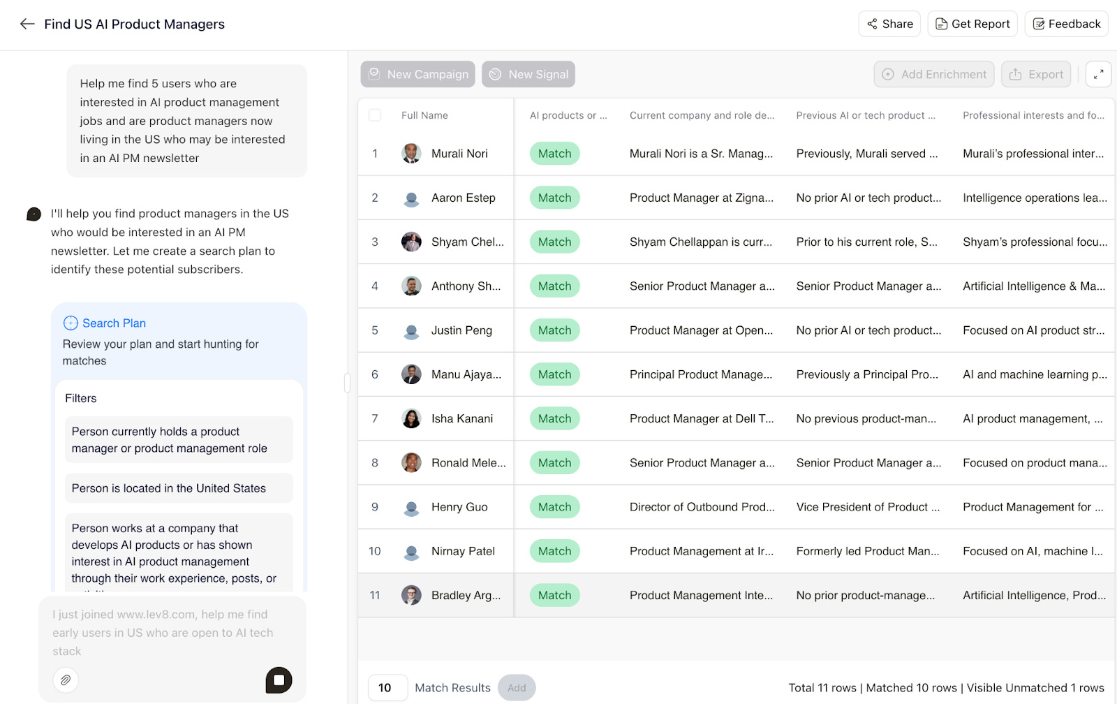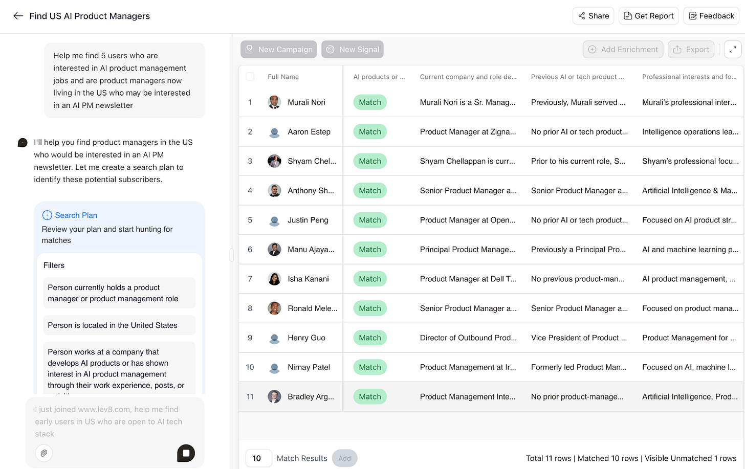 Just tell Lev8 who you’re looking for, and it’s like having a personal assistant scouring the web in real-time, bringing back only the most relevant, verified contacts